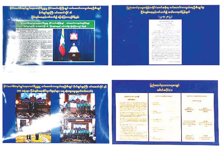 ဗိုလ်ချုပ် ဇော်မင်းထွန်းက ပြည်သူပါဝင်သည့် ပြည်သူ့လုံခြုံရေးစနစ်ကို စစ်ကိုင်းတိုင်းဒေသကြီး နှင့် မကွေးတိုင်းဒေသကြီး မြောက်ဘက်ပိုင်းများတွင် အဓိက ဦးစားပေး အကောင်အထည်ဖော် လျက်ရှိကြောင်း၊ အုပ်ချုပ်ရေးမှူးများ လုံခြုံရေးနှင့် ပတ်သက်ပြီး တော်တော်များများ တိုက်တွန်းထားကြောင်း၊ အုပ်ချုပ်ရေးမှူးများ ထိခိုက်ဒဏ်ရာရခြင်း၊ သေဆုံးခြင်းများ များပြားသည်ကိုလည်း တွေ့ရပါကြောင်း၊ ထို့ကြောင့် မိမိတို့အနေဖြင့် ပြည်သူ ပါဝင်သော ပြည်သူ့လုံခြုံရေးစနစ်ကို ဖော်ဆောင်ရာတွင် ဥပဒေအရ ပြည်သူ့စစ်အဖွဲ့များ ဖွဲ့စည်းခြင်းဖြင့် ဆောင်ရွက်ရကြောင်း၊ အုပ်ချုပ်ရေးအဖွဲ့များ၏ လိုအပ်ချက်များအား မြို့နယ်များကို အဆင့်ဆင့် တင်ပြပေးရန် ပြောလိုကြောင်း၊ လက်နက်ထုတ်ပေး ခွင့်ဆိုသည်ထက် ရပ်ကွက်/ကျေးရွာ အုပ်စုအလိုက် ပြည်သူ့စစ်ဖွဲ့စည်းခွင့်များကို တိုင်းစစ်ဌာနချုပ်များ၌ ဆောင်ရွက်လျက်ရှိကြောင်း၊ နောက်ဆက်တွဲ လိုအပ်သည့်နေရာများတွင် မိမိကိုယ်ကို ခုခံကာကွယ်ပိုင်ခွင့်ရှိသည့် လက်နက်များကို ဆောင်ရွက်ပေးလျက်ရှိပြီး ဆက်လက်ဆောင်ရွက်သွားမည်ဖြစ်ကြောင်း။