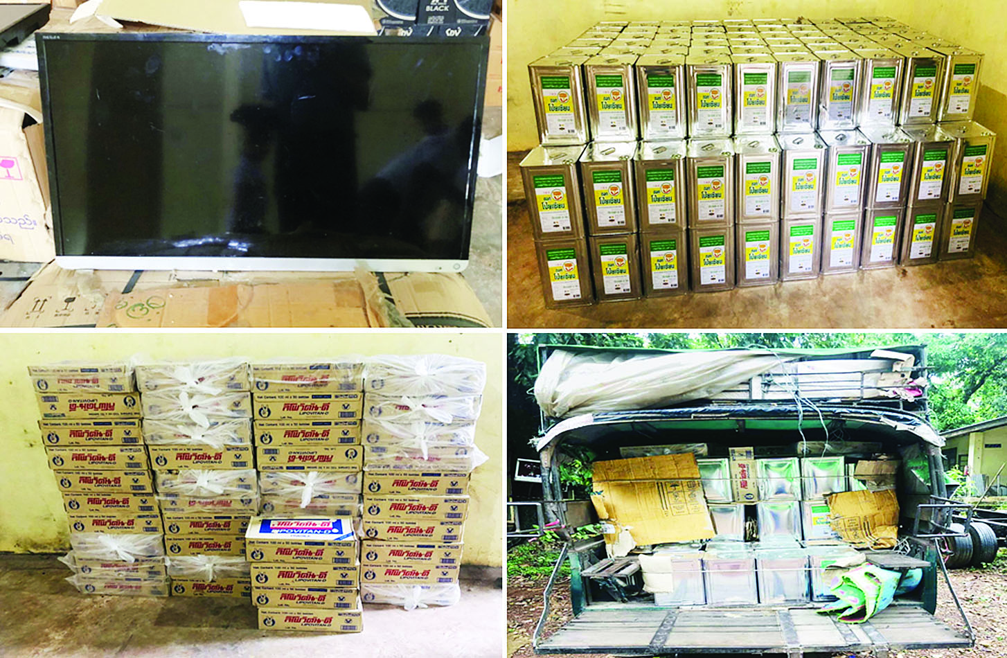 အလားတူပင် ကရင်ပြည်နယ် တရားမဝင် ကုန်သွယ်မှု တိုက်ဖျက်ရေးအထူးအဖွဲ့၏ စီမံခန့်ခွဲမှု ဖြင့် တာဝန်ကျပူးပေါင်းစစ်ဆေးရေးအဖွဲ့က ဘားအံ မြို့ သံလွင်တံတား စုပေါင်းစစ်ဆေးရေးဂိတ်၌ စစ်ဆေးမှုများဆောင်ရွက်ခဲ့ရာ ဩဂုတ် ၂၆ ရက်တွင် မော်တော်ယာဉ်သုံးစီးပေါ်မှ အိမ်သုံးလျှပ်စစ် ပစ္စည်းများနှင့် စားသုံးဆီများ (ခန့်မှန်းတန်ဖိုးငွေကျပ် ၁၃၄၉၀၀၀၀) နှင့် အဆိုပါပစ္စည်းများ တင်ဆောင်လာသော မော်တော်ယာဉ်သုံးစီး (ခန့်မှန်းတန်ဖိုး ငွေကျပ် ၄၀၀၀၀၀၀၀) ကို လည်းကောင်း(ဝဲပုံ)၊ ဩဂုတ် ၂၇ ရက်တွင် မော်တော်ယာဉ်နှစ်စီးပေါ်မှ အကောက် ခွန်မဲ့ အားဖြည့်အချိုရည်များနှင့် စားသုံးဆီများ (ခန့်မှန်းတန်ဖိုးငွေကျပ် ၁၅၉၅၅၀၀၀) နှင့် အဆိုပါ ပစ္စည်းများ တင်ဆောင်လာသော မော်တော်ယာဉ် နှစ်စီး (ခန့်မှန်းတန်ဖိုးငွေကျပ် ၁၀၀၀၀၀၀၀) ကို လည်းကောင်း စုစုပေါင်းခန့်မှန်းတန်ဖိုးငွေကျပ် ၇၉၄၄၅၀၀၀ ကို သိမ်းဆည်းရမိခဲ့ပြီး အကောက်ခွန် လုပ်ထုံးလုပ်နည်းနှင့်အညီ အရေးယူဆောင်ရွက် လျက်ရှိသည်။