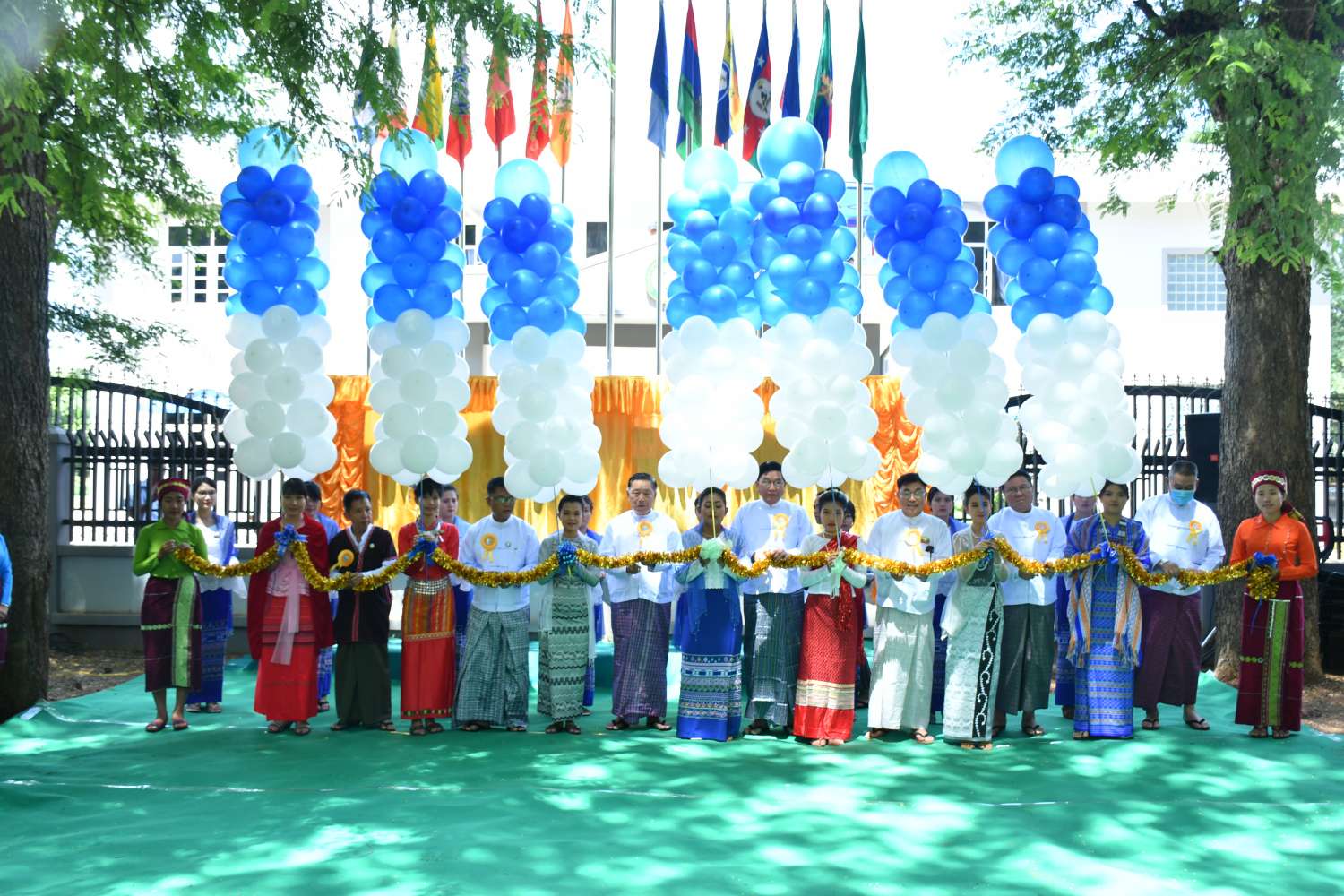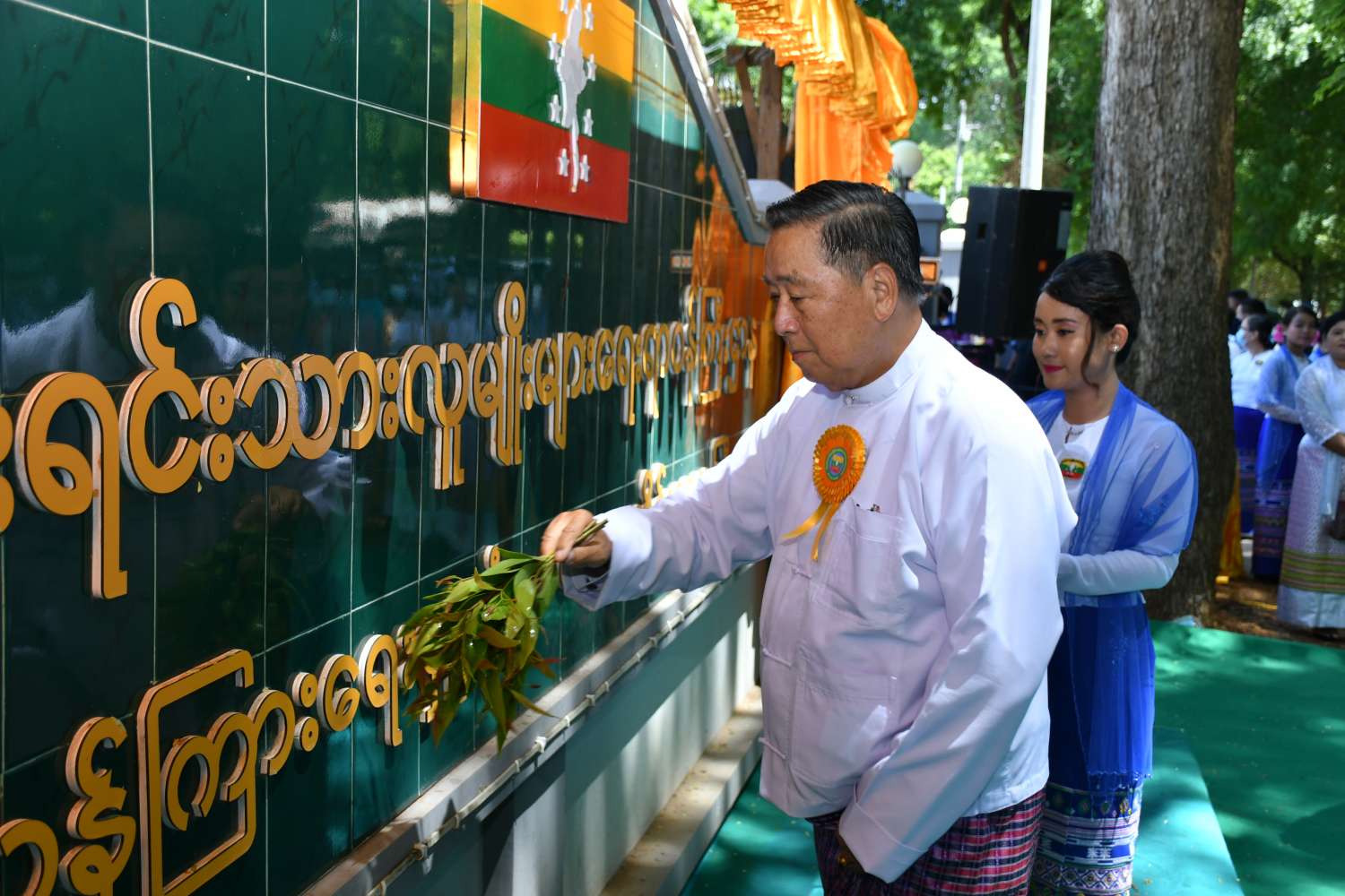 ယင်းနောက် ပြည်ထောင်စုဝန်ကြီး၊ တိုင်းဒေသကြီးဝန်ကြီးချုပ်နှင့် အစိုးရအဖွဲ့ဝင်ဝန်ကြီးများက ညွှန်ကြားရေးမှူးရုံး ဆိုင်းဘုတ်ကို အမွှေးနံ့သာရေများပက်ဖျန်းပေးကြပြီး စုပေါင်းမှတ်တမ်းတင်ဓါတ်ပုံရိုက်ကြသည်။
