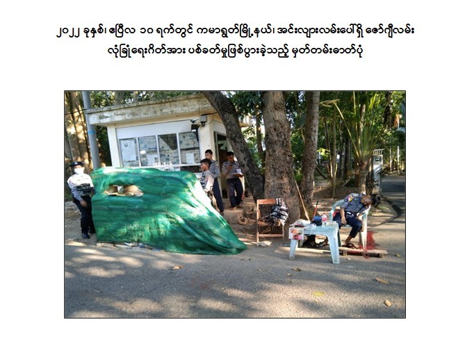 - ၂၀၂၂ ခုနှစ်၊ ဧပြီလ ၁၀ ရက်တွင် ကမာရွတ်မြို့နယ်၊ အင်းလျားလမ်းပေါ်ရှိ ဇော်ဂျီလမ်း လုံခြုံရေးဂိတ်အား လက်နက်ငယ်ဖြင့် ပစ်ခတ်တိုက်ခိုက်ခဲ့ကြောင်း။
