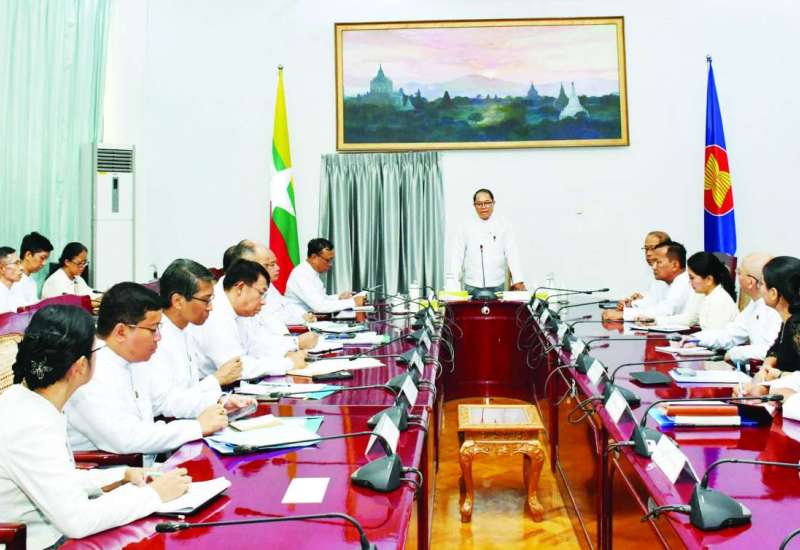 ထို့နောက် ပြည်ထောင်စုဝန်ကြီး၊ နေပြည်တော်ကောင်စီဥက္ကဋ္ဌ၊ သံရုံးယာယီတာဝန်ခံနှင့် တာဝန်ရှိသူများက စိုက်ပျိုးရေးနှင့် ကျေးလက်ဒေသဆိုင်ရာ စာရင်းအင်းအချက်အလက်ဌာန ကြေးပြားဆိုင်းဘုတ်ကို အမွှေးနံ့သာရည်ဖြင့် ပက်ဖျန်းပေးကြပြီး မဲခေါင်-လန်ချန်း စီမံကိန်း သတင်းအချက်အလက် ဗဟိုဌာနအတွင်း လှည့်လည်ကြည့်ရှု စစ်ဆေးကြသည်။