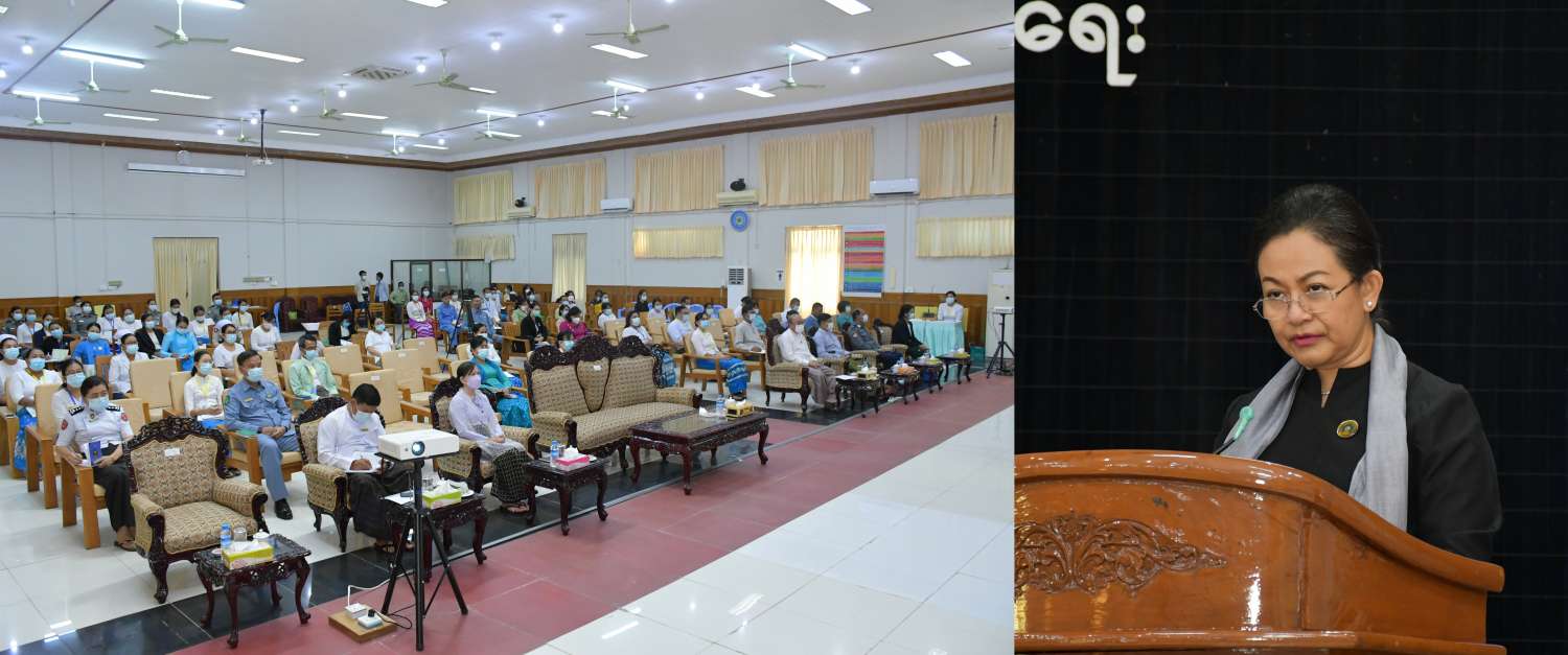 ပဋိပက္ခအတွင်း လိင်ပိုင်းဆိုင်ရာ အကြမ်းဖက်မှု တားဆီးကာကွယ်ရေးနှင့် တုံ့ပြန်ဆောင်ရွက်ရေးဆိုင်ရာ အမျိုးသားအဆင့် လုပ်ငန်းစီမံချက်ပါ ဝန်ကြီးဌာနများမှ ဝန်ထမ်းများသို့ ဖွင့်လှစ်ပို့ချပေးမည့် “ပဋိပက္ခအတွင်း လိင်ပိုင်းဆိုင်ရာအကြမ်းဖက်မှု တားဆီးကာကွယ်ရေးနှင့် တုံ့ပြန်ဆောင်ရွက်ရေး ဝန်ထမ်းများ စွမ်းဆောင်ရည် မြှင့်တင်ရေးသင်တန်း” ဖွင့်ပွဲ အခမ်းအနားကို ယနေ့နံနက် ၉ နာရီခွဲတွင် နေပြည်တော်ရှိ လူမှုဝန်ထမ်း၊ ကယ်ဆယ်ရေးနှင့် ပြန်လည်နေရာချထားရေးဝန်ကြီးဌာန၊ ဝန်ကြီးရုံး စုပေါင်း အစည်းအဝေးခန်းမ၌ ကျင်းပသည်။