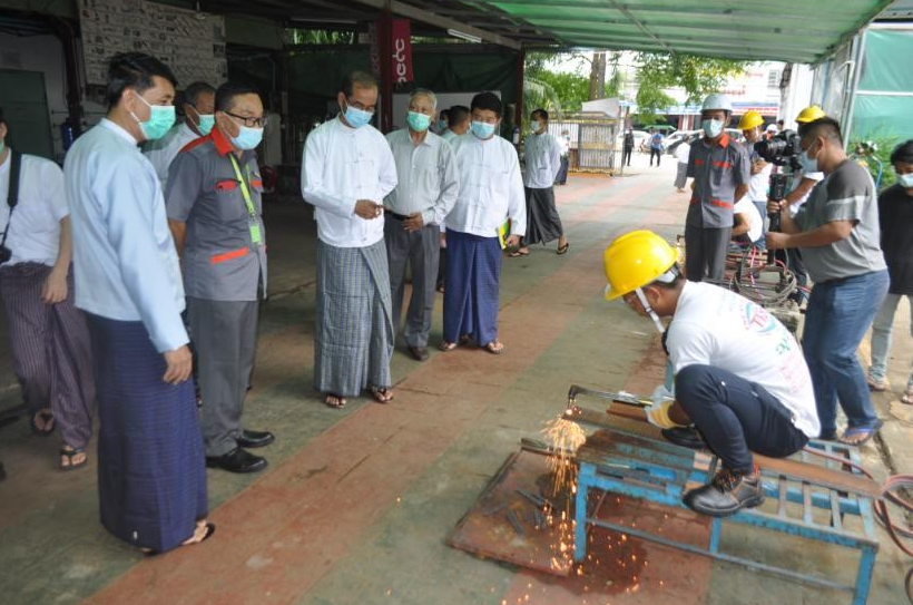 မြန်မာနိုင်ငံ လုပ်သားများကျွမ်းကျင်မှု “စံ” သတ်မှတ်ပြဋ္ဌာန်းရေးအဖွဲ့ (NSSA) ဥက္ကဋ္ဌ၊ အလုပ်သမားဝန်ကြီးဌာန ဒုတိယဝန်ကြီး ဦးဝင်းရှိန်သည် တာဝန်ရှိသူများနှင့်အတူ ယနေ့နံနက်ပိုင်းတွင် ရန်ကုန်တိုင်းဒေသကြီး၊ လှိုင်သာယာမြို့နယ်၊ စက်မှုဇုန်(၅)ရှိ အလုပ်သမားညွှန်ကြားရေးဦးစီးဌာန အသိအမှတ်ပြု ထက်ဦးသင်တန်းကျောင်းသို့ သွားရောက်ကြည့်ရှုအားပေးသည်။