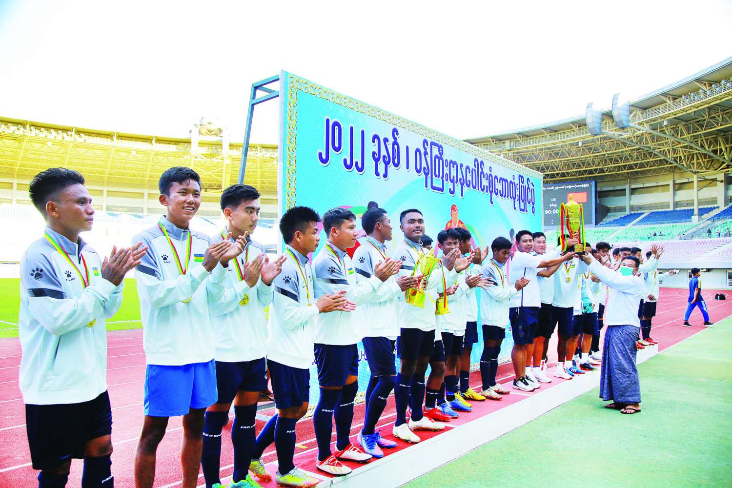 ပြိုင်ပွဲအပြီးတွင် ဆုချီးမြှင့်ခြင်းအခမ်းအနား ဆက်လက်ကျင်းပရာ အကောင်းဆုံး ဂိုးသမားဆု ရရှိခဲ့သည့် ပို့ဆောင်ရေးနှင့်ဆက်သွယ်ရေးဝန်ကြီးဌာနအသင်းမှ ကျောနံပါတ် (၁၈) ဟိန်းထက်စိုးနှင့် အကောင်းဆုံးနောက်တန်း အားကစားသမားဆု ရရှိခဲ့သည့် ပြည်ထဲရေးဝန်ကြီးဌာနအသင်းမှ ကျောနံပါတ် (၂၅) အောင်ဇင်ဖြိုးတို့ကို သာသနာရေးနှင့်ယဉ်ကျေးမှုဝန်ကြီးဌာန ဒုတိယဝန်ကြီး ဒေါက်တာ မိုးဇော်ထွန်းက လည်းကောင်း၊ အကောင်းဆုံး အလယ်တန်းအားကစားသမားဆု ရရှိခဲ့သည့် ကာကွယ်ရေးဝန်ကြီးဌာနအသင်းမှ ကျောနံပါတ် (၇) ကျော်စိုးဦး၊ အကောင်းဆုံးရှေ့တန်း အားကစားသမား ဆုရရှိခဲ့သည့် အားကစားနှင့်လူငယ်ရေးရာဝန်ကြီးဌာနအသင်းမှ ကျောနံပါတ် (၂၂) စောနေမျိုးထွန်းနှင့် ပွဲစဉ်တစ်လျှောက်အကောင်းဆုံး အားကစားသမားဆု ရရှိခဲ့သည့် ပြည်ထဲရေးဝန်ကြီးဌာနအသင်းမှ ကျောနံပါတ် (၁၁) မင်းမော်ဦးတို့ကို သာသနာရေးနှင့် ယဉ်ကျေးမှုဝန်ကြီးဌာန ဒုတိယဝန်ကြီး ဦးအေးထွန်း ကလည်းကောင်း တစ်ဦးချင်း အကောင်းဆုံးဆုများနှင့် ငွေသားဆုများအား ပေးအပ်ချီးမြှင့်ကြသည်။