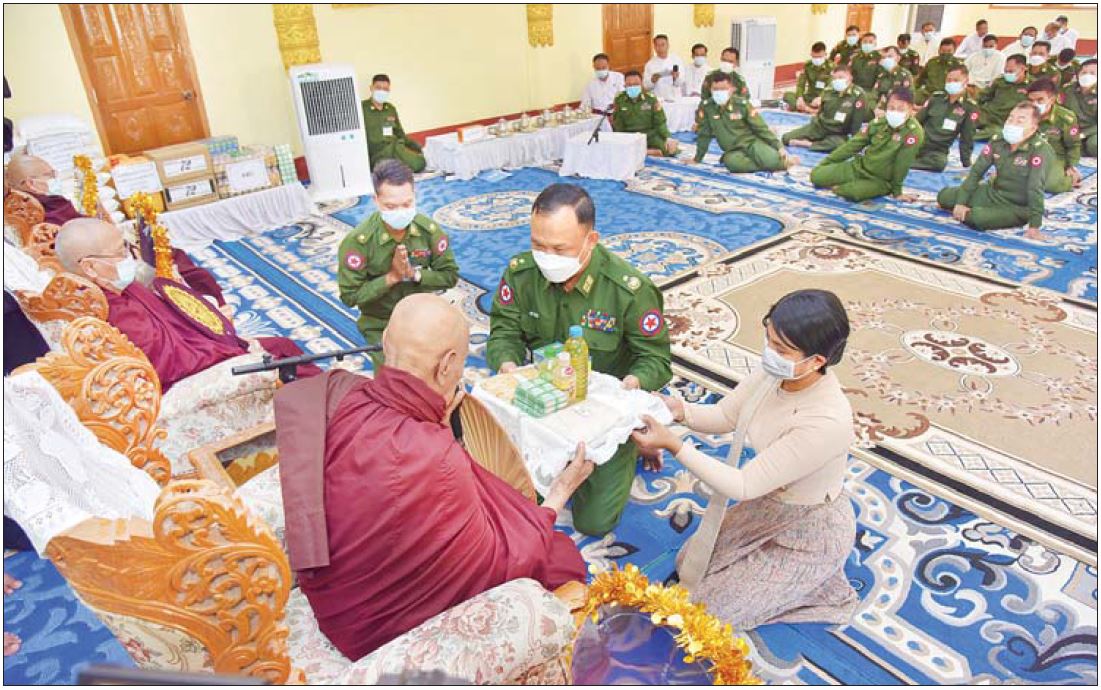 နေပြည်တော်ကောင်စီနယ်မြေ ပျဉ်းမနား၊ လယ်ဝေး၊ တပ်ကုန်းမြို့နယ်များရှိ ပရိယတ္တိစာသင်တိုက်များ၊ သာသနာ့နွယ်ဝင်သီလရှင် စာသင်တိုက်များနှင့် ဘိုးဘွားရိပ်သာများသို့ တပ်မတော် (ကြည်း၊ရေ၊လေ) မိသားစုများနှင့် စေတနာရှင်ပြည်သူများက ၂၀၀၆ ခုနှစ်မှစ၍ နှစ်စဉ်လှူဒါန်းလျက်ရှိပြီး ယနေ့လှူဒါန်းမှု အစုစုမှာ ဆွမ်းပဒေသာပင် အလှူငွေကျပ် ၁၂၅၈၆၀၀၀၊ ဆန် ၄၉၁ အိတ် ၁၆ ပြည်၊ ဆီ ၁၄၇ ပိဿာ ၅၀ ကျပ်သား၊ ပဲ ၁၄၇၅ ပိဿာ၊ ဆား ၁၄၇၅ ပိဿာ၊ လက်သန့်ဆေးရည် ၇၉၂ ဘူးနှင့် တိုင်းရင်းဆေးမျိုးစုံ ၁၇၈၈ ဘူးတို့ဖြစ်ပြီး စုစုပေါင်း တန်ဖိုးငွေကျပ် ၄၀၂၂၂၅၀၀ ဖြစ်ကြောင်း သတင်းရရှိသည်။