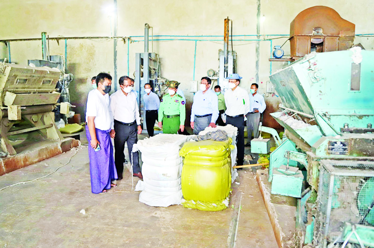 ထိုမှတစ်ဆင့် ပြည်ထောင်စု ဝန်ကြီးနှင့်အဖွဲ့သည် အမရပူရမြို့နယ် ရေကြည်ပေါက်ရွာရှိ ပုဂ္ဂလိက စက်ရက်ကန်းရုံတွင် ၂/၄၀၊ ၂/၈၀ နှင့် ၂/၁၀၀ ချည်ထည် အမျိုးမျိုးကို ဈေးကွက် လိုအပ်ချက်အရ ထုတ်လုပ်နေမှု၊ ကုန်ချော ထုတ်လုပ်ရန် ပြည်တွင်း ပြည်ပမှ ဝါနှင့် ပိုးချည်များ ဝယ်ယူ အသုံးပြုမှုကို ဆွေးနွေးကြပြီး ချည်ထည် ရက်လုပ်နေမှုနှင့် ချည်ခင်ဆေးဆိုး လုပ်ငန်းများကို ကြည့်ရှု အားပေးခဲ့ကြကြောင်း သိရသည်။