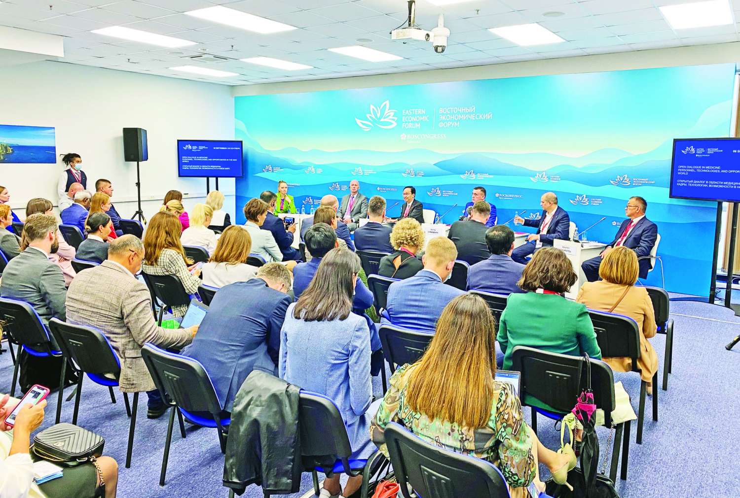 အလားတူ ကျန်းမာရေးဝန်ကြီးဌာန ပြည်ထောင်စုဝန်ကြီး ဒေါက်တာ သက်ခိုင်ဝင်းသည် Eastern Economic Forum-2022 ၏ Medical Panel Session တွင် ပါဝင်တက်ရောက်၍ ကျန်းမာရေးစနစ်တွင် တွေ့ကြုံရသော အခက်အခဲများ၊ ထိုအခက်အခဲများ ကျော်ဖြတ်ရန် ကြိုးပမ်းမှုများ၊ နိုင်ငံအချင်းချင်း ပူးပေါင်းဆောင်ရွက်ခြင်းဖြင့် ရရှိနိုင်မည့် အခွင့်အလမ်းများ၊ တိုးတက်လာသော နည်းပညာများကိုသုံး၍ ရောဂါရှာဖွေရေး၊ ကင်ဆာရောဂါများ ကုသရေး၊ ကူးစက်မြန်ရောဂါများ ထိန်းချုပ်ရေးနှင့် အဆိုပါနည်းပညာများ ဖွံ့ဖြိုးဆဲနိုင်ငံများကို မျှဝေနိုင်မည့် အစီအစဉ်များနှင့် ပတ်သက်၍လည်းကောင်း၊ သိပ္ပံနှင့်နည်းပညာဝန်ကြီးဌာန ပြည်ထောင်စုဝန်ကြီး ဒေါက်တာမျိုးသိန်းကျော်သည် Eastern Economic Forum-2022 ၏ Strategic Technical Alliance တွင် ပါဝင်တက်ရောက်ခဲ့ပြီး ကိုဗစ်-၁၉ အလွန်ကာလ ပညာရေးဆိုင်ရာ ပြုပြင်ပြောင်းလဲသင့်သည့် အချက်များကို လည်းကောင်း အသီးသီး ဆွေးနွေးခဲ့ကြသည်။