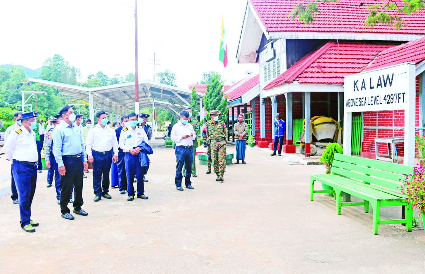 ထို့ပြင် ပြည်ထောင်စုဝန်ကြီးသည် ရှေးဟောင်းရေနွေးငွေ့စက်ခေါင်းနှင့် ချိတ်ဆက်ထားသည့်တွဲ ပြသထားမှုအခြေအနေကိုလည်းကောင်း၊ ပင်းပက်ဒေသရှိ သံမဏိထုတ်လုပ်ရေးစက်ရုံနှင့် ချိတ်ဆက်မည့် ရထားလမ်း တည်ဆောက်ရန် လျာထားနေရာနှင့် ပင်းပက်ဘူတာ တည်ဆောက်မည့် နေရာတို့ကိုလည်းကောင်း၊ ပင်းပက်-နောင်ကား ရထားလမ်းသစ် ဖောက်လုပ်မည့် လမ်းအူကြောင်းတစ်လျှောက် စီမံကိန်းလုပ်ငန်းခွင် နေရာများသို့လည်းကောင်း၊ နောင်ကားလမ်းဆုံမှ အထူးရထားစီးနင်း၍ ရထားလမ်းပိုင်း၏ ကြံ့ခိုင်မှုအခြေအနေကိုလည်းကောင်း၊ ဘူတာများ၏ သန့်ရှင်းသပ်ရပ်မှု၊ ကားနှင့် ရထားလမ်းကူး(Level Crossing) များ၌ မော်တော်ယာဉ်များ စနစ်တကျ ဖြတ်သန်းသွားလာမှု အခြေအနေများကိုလည်းကောင်း လိုက်လံကြည့်ရှုစစ်ဆေးပြီး တောင်ကြီးဘူတာ၌ တာဝန်ရှိသူများ၊ ဘူတာဝန်ထမ်းများနှင့် တွေ့ဆုံကာ ဘူတာသန့်ရှင်းသပ်ရပ်စေရေး၊ စက်ခေါင်းနှင့်တွဲများ လုံခြုံမှုရှိစေရေး၊ ရထားများ အချိန်မှန်ကန်စေရေး၊ ရထားစီးခရီးသည်များ စိတ်ချမ်းမြေ့စွာ သွားလာနိုင်စေရေး၊ ကောင်းမွန်သော ဝန်ဆောင်မှုများပေးနိုင်ရေး ကိစ္စရပ်များကို မှာကြားကြောင်း သိရသည်။