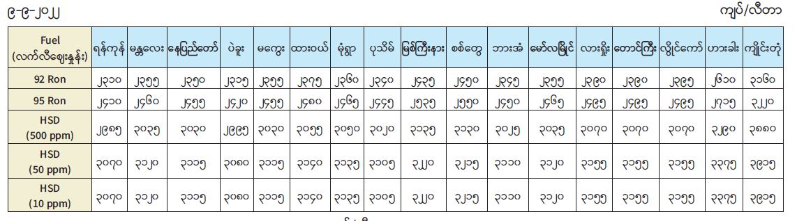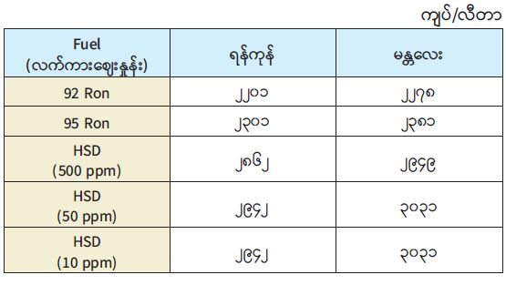 ရန်ကုန်မြို့နှင့် မန္တလေးမြို့အတွက် ရည်ညွှန်းလက်ကားဈေးနှုန်းများနှင့် ပြည်ထောင်စုနယ်မြေ နေပြည်တော်၊ တိုင်းဒေသကြီး/ ပြည်နယ် မြို့တော်များအတွက် ရည်ညွှန်းလက်လီဈေးနှုန်း