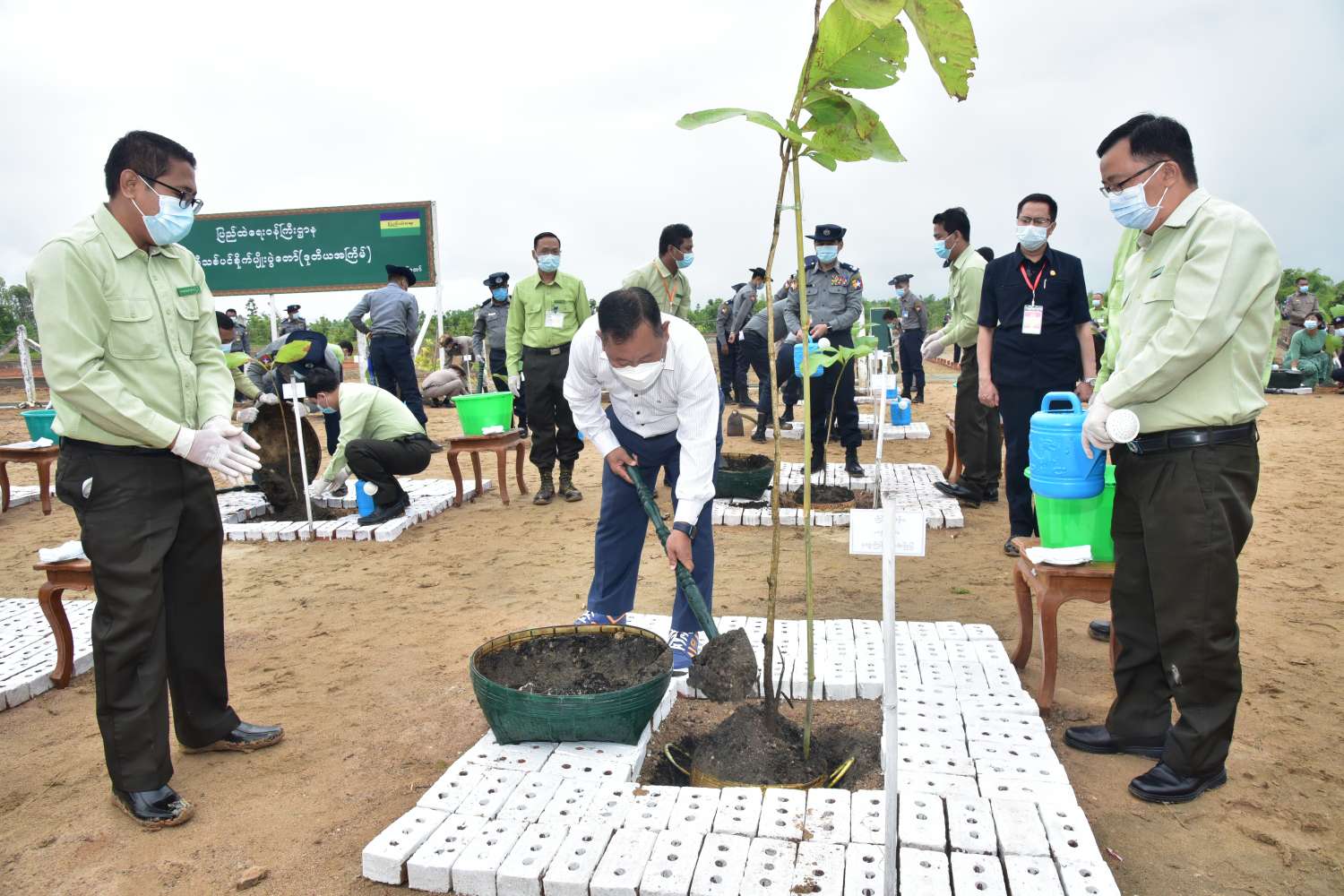 ပြည်ထဲရေးဝန်ကြီးဌာန၏ (ပထမအကြိမ်) မိုးရာသီသစ်ပင်စိုက်ပျိုးပွဲတွင် ရတနာတန်းဝင်ကျွန်း၊ မဟော်ဂနီ၊ ပိတောက်၊ သင်းဝင်၊ ခရေ၊ အရိပ်ရလေကာ မန်ဂျန်ရှား စသည့် အပင်စုစုပေါင်း ၁၁၂၀ ကို စိုက်ပျိုးခဲ့ကြောင်း၊ (ဒုတိယအကြိမ်) မိုးရာသီသစ်ပင်စိုက်ပျိုးပွဲတွင် ရတနာတန်းဝင် ကျွန်းပင် ၁၀၀၀ ကို စိုက်ပျိုးခဲ့ကြောင်း၊ ယခုနှစ် မိုးရာသီသစ်ပင် စိုက်ပျိုးကာလအတွင်း ပြည်ထဲရေးဝန်ကြီးဌာန ကွပ်ကဲမှုအောက်ရှိ တပ်ဖွဲ့/ဦးစီးဌာနများ၏ ရုံးချုပ်များနှင့် ဒေသအနှံ့ ရုံးဌာနအားလုံးတွင် ယနေ့အထိ ရတနာတန်းဝင်အပင်များ၊ အရိပ်ရလေကာပင်များ၊ သီးပင်စားပင်များ စုစုပေါင်း ၁၅၇၅၃၇ ပင် စိုက်ပျိုးနိုင်ခဲ့ကြောင်းနှင့် သစ်တောသယံဇာတများ ရေရှည်တည်တံ့စေရန်၊ ဂေဟစနစ်ထိန်းသိမ်းနိုင်စေရန်နှင့် သစ်တောထိန်းသိမ်းရေး လုပ်ငန်းများတွင် ပြည်သူများတက်ကြွစွာ ပူးပေါင်းပါဝင်လာစေရန် ရည်ရွယ်ပြီး သစ်ပင်စိုက်ပျိုးပွဲများ ကျင်းပနေခြင်းကြောင်း သိရသည်။