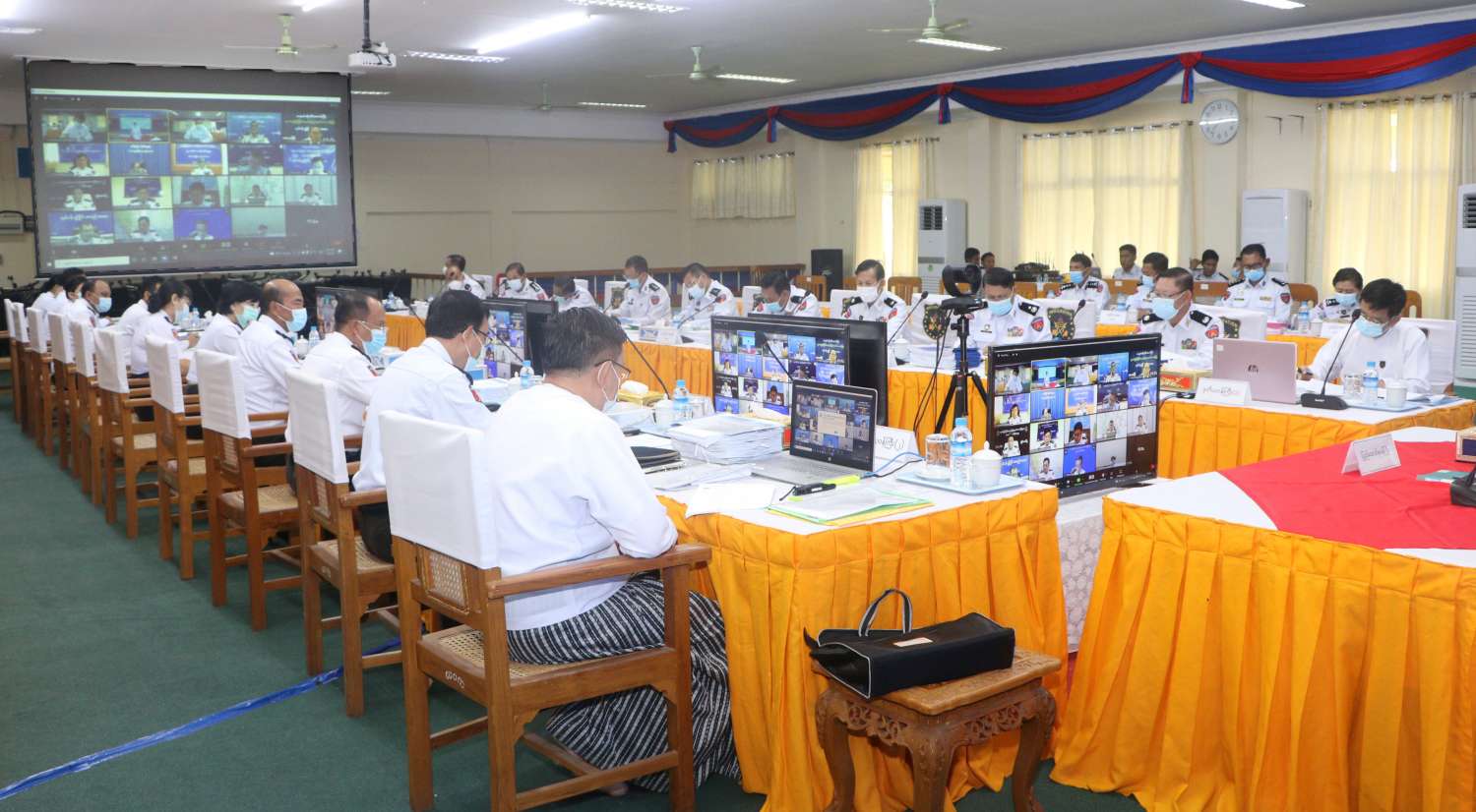 ထို့နောက် သက်ဆိုင်ရာနယ်မြေအသီးသီးမှ ဗီဒီယိုကွန်ဖရင့်စနစ်ဖြင့် တက်ရောက်ကြသည့် တိုင်းဒေသကြီး/ပြည်နယ် ဦးစီးမှူးများက ပန်းခင်းစီမံချက်အဆင့် (၁) နှင့် (၂) တို့ကို သတ်မှတ်ကာလအတွင်း လျာထားချက်ပြည့်မီပြီးစီးနိုင်ရေးအတွက် ကြိုးပမ်းဆောင်ရွက်နေမှု၊ မဲစာရင်း မှန်ကန်ရေးအတွက် ဆက်စပ်ဌာန အဖွဲ့အစည်းများ ဖြင့်ပူးပေါင်းကာ မိမိဌာနစာရင်းဇယားများနှင့် မြေပြင်ကွင်းဆင်းတိုက်ဆိုင် စစ်ဆေးဆောင်ရွက်မည့် အစီအစဉ်များ၊ လက်ရှိဆောင်ရွက် နေမှုနှင့် လုပ်ငန်းဆိုင်ရာလိုအပ်ချက်များကို ရှင်းလင်းဆွေးနွေးတင်ပြ ကြသည်။