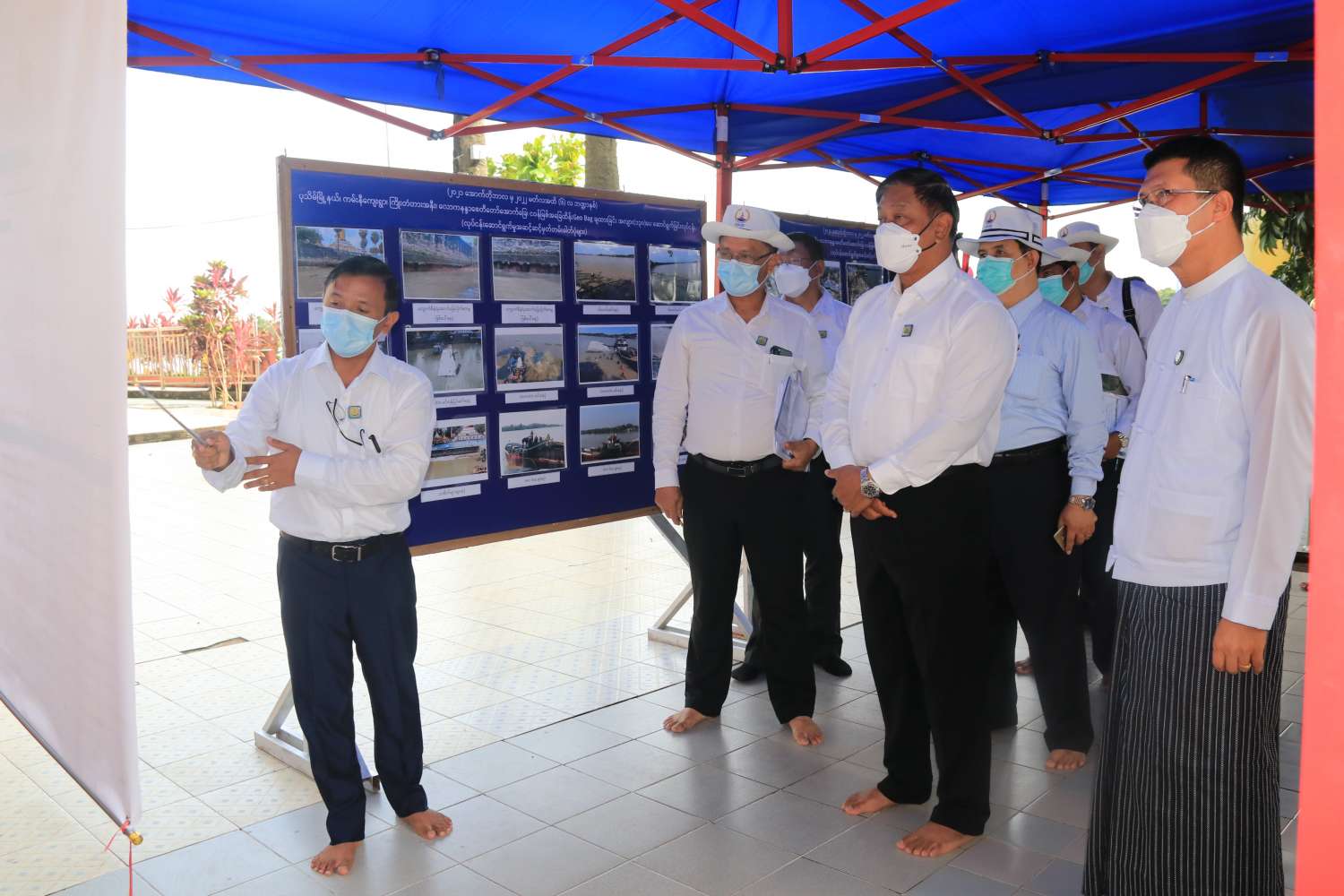 ရှေးဦးစွာ ပြည်ထောင်စုဝန်ကြီးသည် တာဝန်ရှိသူများနှင့်အတူ နံနက်ပိုင်းတွင် ပုသိမ်မြို့အနီး၊ ငဝန်မြစ်ရေတိုက်စားမှုမှ ကာကွယ်ထိန်းသိမ်းခြင်းလုပ်ငန်း ဆောင်ရွက်လျက်ရှိသည့် လောကနန္ဒာဘုရား ကမ်းပါးအောက်ခြေတွင် ကမ်းပြိုမှုကာကွယ်ရေး ဆောင်ရွက်ထားရှိမှု၊ ကမ်းပြိုကာကွယ်ရေး ထိန်းသိမ်းနိုင်ရန် ဘုရား၏အထက်ဘက် Up Stream မှ သောင်တူးဖော်ရေးလုပ်ငန်း ဆောင်ရွက်ထားရှိမှုကို ကြည့်ရှုစစ်ဆေးရာ ရေအရင်းအမြစ်နှင့် မြစ်ချောင်းများ ဖွံ့ဖြိုးတိုးတက်ရေးဦးစီးဌာန ညွှန်ကြားရေးမှူးချုပ်က လုပ်ငန်းဆောင်ရွက်ထားရှိမှုကို အသေးစိတ်ရှင်းလင်းတင်ပြသည်။ ပြည်ထောင်စုဝန်ကြီးက ရေတိုက်စားမှု ဖြစ်ပေါ်သည့်ကမ်းပါးနေရာများ တည်တံ့အောင် စနစ်တကျ စံချိန်စံညွှန်းနှင့်အညီ ပြုပြင်ဆောင်ရွက်ရန်၊ ရေတိုက်စားမှု ထပ်မံမဖြစ်ပွားစေရေး၊ လိုအပ်သည့် နေရာများတွင် သောင်တူးဖော်ရေးလုပ်ငန်းများအား ကြိုတင်စီမံဆောင်ရွက်ရန် မှာကြားသည်။