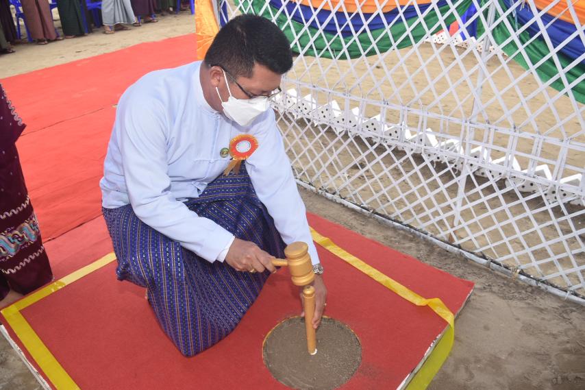 ဦးစွာနိုင်ငံတော်စီမံအုပ်ချုပ်ရေးကောင်စီအဖွဲ့ဝင် မန်းငြိမ်းမောင်၊ တိုင်းဒေသကြီးဝန်ကြီးချုပ် ဦးတင်မောင်ဝင်း၊ အနောက်တောင်တိုင်းစစ်ဌာနချုပ်တိုင်းမှူး ဗိုလ်ချုပ်အောင်အောင်၊ တိုင်းဒေသကြီးအစိုးရအဖွဲ့ဝင်များနှင့် တာဝန်ရှိသူများသည် မင်္ဂလာအချိန်တွင် သတ်မှတ်နေရာများ၌ မင်္ဂလာပန္နက်တိုင်များစိုက်ထူ၍ အမွှေးနံ့သာရည်များ ပက်ဖြန်းပေးကြပြီး လူထုအခြေပြုဗဟိုဌာန (Community Centre) ဆောက်လုပ်ရေး ကုမ္ပဏီတာဝန်ခံက လုပ်ငန်းဆောင်ရွက်မှုကို ရှင်းလင်းတင်ပြသည်။