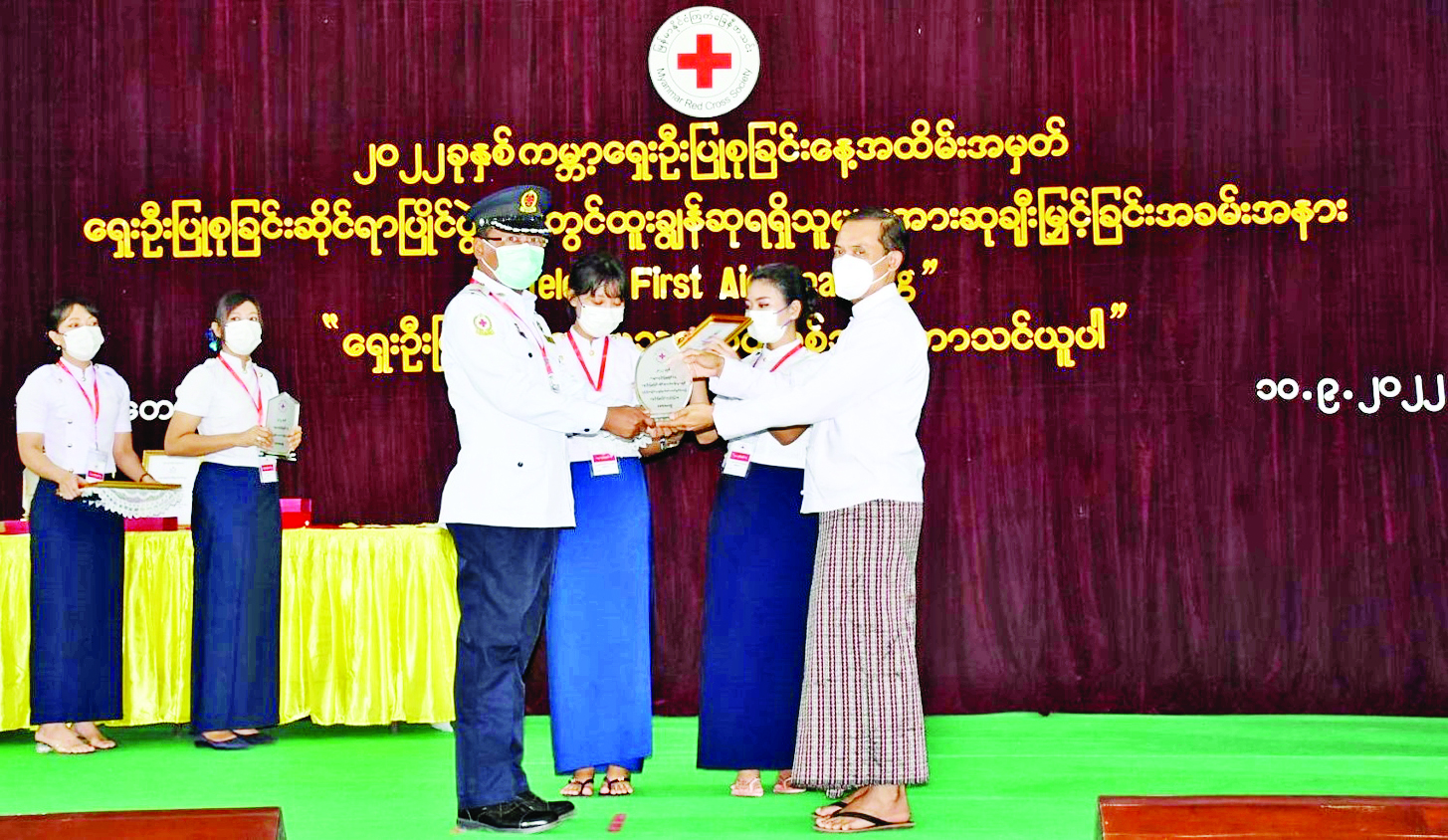 ၂၀၂၂ ခုနှစ် ကမ္ဘာ့ရှေးဦးပြုစုခြင်းနေ့အထိမ်းအမှတ် ရှေးဦးပြုစုခြင်းဆိုင်ရာ ပြိုင်ပွဲများတွင် ထူးချွန်ဆုရရှိသူများအား ဆုချီးမြှင့်ခြင်းအခမ်းအနားကို ယနေ့ နံနက် ၁၀ နာရီတွင် နေပြည်တော်ရှိ မြန်မာနိုင်ငံကြက်ခြေနီအသင်းဌာနချုပ်၌ hybrid စနစ်ဖြင့် ကျင်းပသည်။