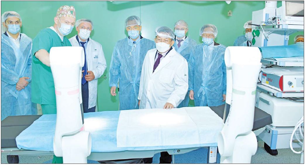 ထို့နောက် နိုင်ငံတော်စီမံအုပ်ချုပ်ရေးကောင်စီဥက္ကဋ္ဌ နိုင်ငံတော်ဝန်ကြီးချုပ်နှင့် အဖွဲ့ဝင်များသည် ဆေးရုံဝန်းအတွင်း လှည့်လည်ကြည့်ရှုကြပြီး ဆေးရုံတည်ဆောက်မည့် အခြေအနေများ၊ ဆေးရုံအတွင်း၌ Robotic Technology အသုံးပြု၍ ခွဲစိတ်ကုသမှု ဆောင်ရွက်နိုင်သည့် စက်ကိရိယာများ၏ စွမ်းဆောင်ရည်များကို လိုက်လံရှင်းလင်းပြသခဲ့ပြီး စမ်းသပ်ခွဲစိတ် ကုသမှုတစ်ခုကို သရုပ်ပြခွဲစိတ်ပြသသည်။ ယင်းနောက် ခွဲစိတ်ကုသမှု အောင်မြင်စွာ ပြီးမြောက်ခြင်းအထိမ်းအမှတ်အဖြစ် အမှတ်တရဓာတ်ပုံရိုက်ကြသည်။ ၎င်းနောက် နိုင်ငံတော်စီမံအုပ်ချုပ်ရေးကောင်စီဥက္ကဋ္ဌ နိုင်ငံတော်ဝန်ကြီးချုပ်သည် ဆေးရုံအကြီးအကဲအား အမှတ်တရလက်ဆောင်ပစ္စည်းများ ပေးအပ်ခဲ့သည်။