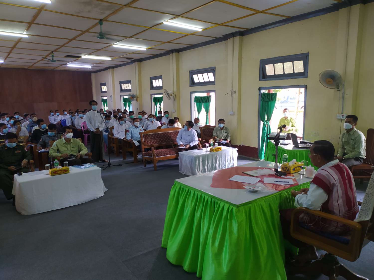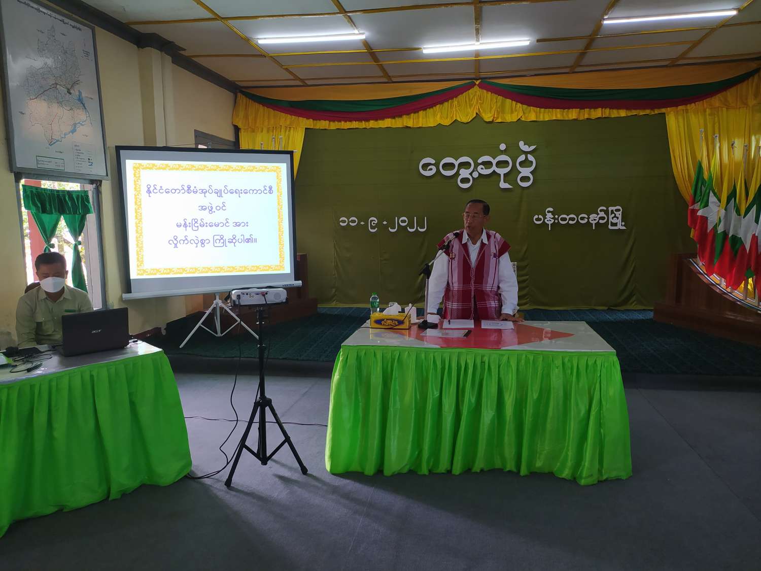 ယင်းနောက် နိုင်ငံတော်စီမံအုပ်ချုပ်ရေးကောင်စီအဖွဲ့ဝင် မန်းငြိမ်းမောင်က နိုင်ငံတော်အစိုးရ၏ ရှေ့ဆက်လုပ်ဆောင်မည့် လုပ်ငန်းစဉ်များ၊ ၂၀၂၃ ခုနှစ်တွင် ကျင်းပပြုလုပ်ပေးမည့် ရွေးကောက်ပွဲတွင် မြို့နယ်အလိုက် လွပ်လပ်၍သန့်ရှင်းမျှတသော ရွေးကောက်ပွဲဖြစ်စေရန် ဒေသအာဏာပိုင်များ ဦးဆောင်၍ ရပ်ကွက်/ကျေးရွာ အုပ်ချုပ်ရေးမှူးများက အဂတိတရားကင်းကင်း၊ ဘက်လိုက်မှုကင်းကင်းဖြင့် ဆောင်ရွက်ကြရန်ဖြစ်ကြောင်း၊ လာမည့်ရွေးကောက်ပွဲတွင် ရွေးချယ်လိုက်သည့် အစိုးရသည် သန့်ရှင်းတရားမျှတသည့် အစိုးရနိုင်ငံခေါင်းဆောင်များ ပေါ်ထွက်အောင် ရွေးကောက်တင်မြှောက်ကြပါဟု ပြောကြားသည်။