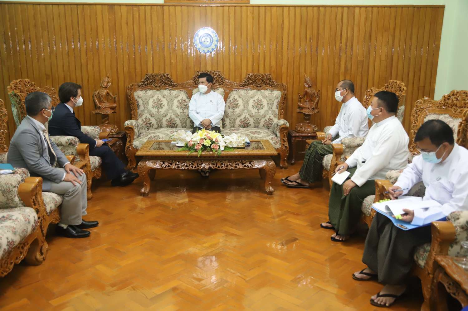 ပြည်ထောင်စုဝန်ကြီး ဒေါက်တာပွင့်ဆန်း ရွှေ့ပြောင်းသွားလာ နေထိုင်ခြင်းဆိုင်ရာ နိုင်ငံတကာ အဖွဲ့အစည်း (International Organization for Migration- IOM) မှ Chief of Mission ဖြစ်သူ Mr. Dragan Aleksoski အား လက်ခံတွေ့ဆုံ