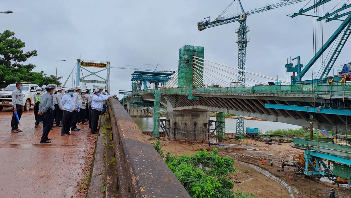 ဆက်လက်၍ ပြည်ထောင်စုဝန်ကြီးသည် ပြည်နယ်လမ်းပန်းဆက်သွယ်ရေးဝန်ကြီး၊ တာဝန်ရှိသူများနှင့်အတူ ဂျိုင်း (ဇာသပြင်) တံတားဟောင်း ကြံ့ခိုင်မှု၊ တံတားသစ်၏ Bored Pile လုပ်ငန်းနှင့် ဆက်စပ်လုပ်ငန်းများ ဆောင်ရွက်နေမှု၊ အိန္ဒု - ကော့ကရိတ်လမ်းအဆင့် မြှင့်တင်ဆောင်ရွက်ထားရှိမှုတို့ကိုလည်းကောင်း၊ ဂျိုင်း(ကော့ကရိတ်)တံတား တံတားချဉ်းကပ် လမ်းများ ဆောင်ရွက်နေမှု ၊ နည်းပညာသစ် ထည့်သွင်းအသုံးပြုထားသည့် ပင်မတံတား ကြမ်းခင်းအစိတ်အပိုင်းများနှင့် ကြိုးဆိုင်းများ ချိတ်ဆက်နေမှုတို့ကိုလည်းကောင်း ကြည့်ရှု စစ်ဆေးသည်။