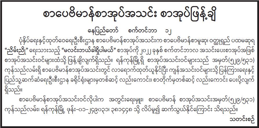 စာပေဗိမာန်စာအုပ်အသင်း စာအုပ်ဖြန့်ချိ