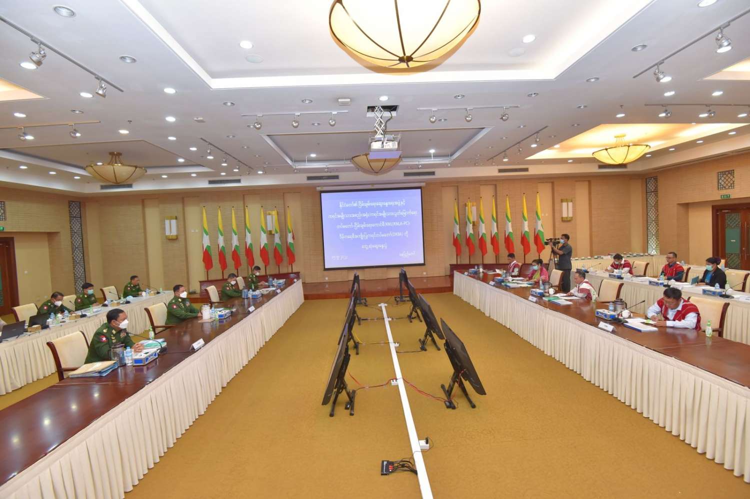 နိုင်ငံတော်၏ငြိမ်းချမ်းရေးဆွေးနွေးရေးအဖွဲ့နှင့် ကရင်အမျိုးသားအစည်းအရုံး ကရင်အမျိုးသား လွတ်မြောက်ရေးတပ်မတော် ငြိမ်းချမ်းရေးကောင်စီ (KNU/KNLA-PC)၊ ဒီမိုကရေစီအကျိုးပြု ကရင်တပ်မတော်(DKBA) ငြိမ်းချမ်းရေးကိုယ်စားလှယ်အဖွဲ့တို့ တွေ့ဆုံဆွေးနွေးပွဲကို ယနေ့နံနက်ပိုင်းတွင် နေပြည်တော်ရှိ အမျိုးသားစည်းလုံးညီညွတ်ရေးနှင့် ငြိမ်းချမ်းရေးဖော်ဆောင်မှုဗဟိုဌာန အစည်းအဝေးခန်းမ၌ ကျင်းပသည်။