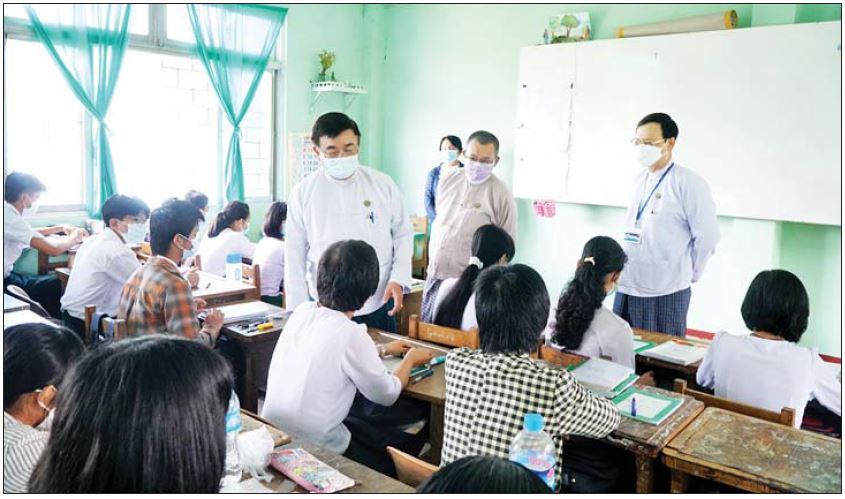အဆိုပါ အထက်တန်းကျောင်းသို့ ရောက်ရှိစဉ် စာသင်ခန်းအတွင်း ကျောင်းသားကျောင်းသူများ အေးချမ်းစွာ ပညာသင်ကြားနေမှုများကို လိုက်လံကြည့်ရှုပြီး လိုအပ်သည်များ ဖြည့်ဆည်းဆောင်ရွက်ပေးသည်။
