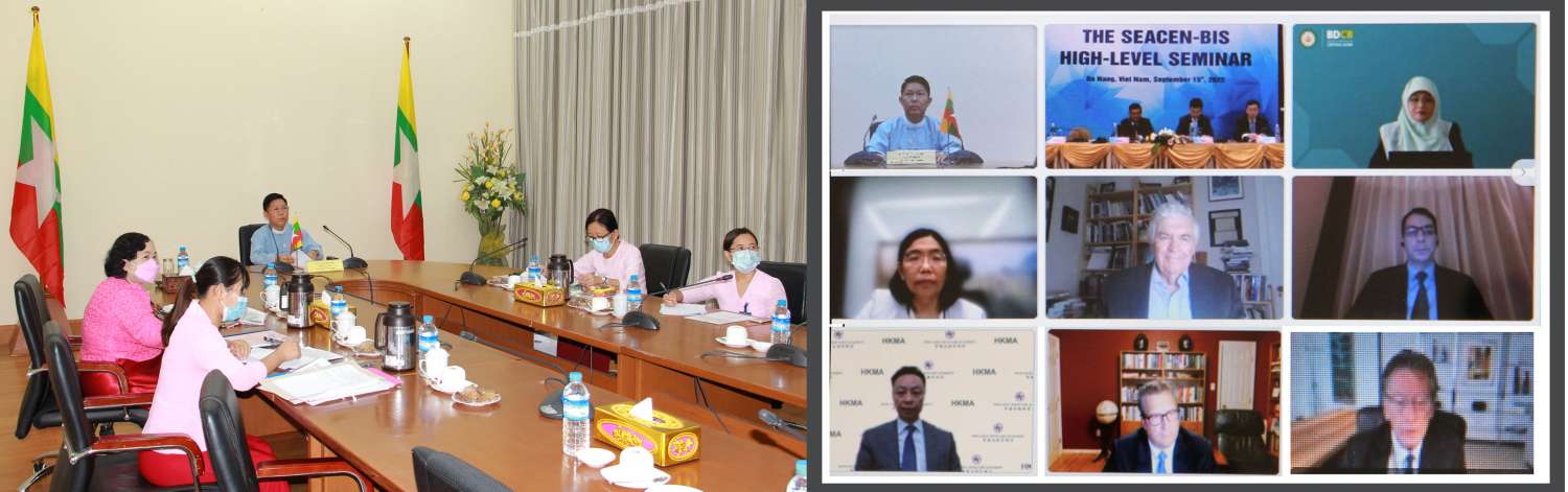 အရှေ့တောင်အာရှဗဟိုဘဏ်များအဖွဲ့(The South East Asian Central Banks-SEACEN Centre)၊ အပြည်ပြည်ဆိုင်ရာစာရင်းရှင်းလင်းရေးဘဏ် (Bank for International Settlements-BIS)နှင့် ဗီယက်နမ်နိုင်ငံဗဟိုဘဏ်တို့မှ ကြီးမှူး၍ Hybrid Format (in person နှင့် virtual) ဖြင့် ကျင်းပသည့် အရှေ့တောင်အာရှဗဟိုဘဏ်များအဖွဲ့- အပြည်ပြည်ဆိုင်ရာ စာရင်းရှင်းလင်းရေးဘဏ်တို့၏ အဆင့်မြင့်အရာရှိများဆွေးနွေးပွဲ (SEACEN-BIS High Level Seminar)ကို ယမန်နေ့ နံနက် ၉ နာရီတွင်လည်းကောင်း၊ (၂၁) ကြိမ်မြောက် အရှေ့တောင်အာရှဗဟိုဘဏ်ဒုတိယဥက္ကဋ္ဌများ အစည်းအဝေး (21st SEACEN Executive Committee -EXCO Meeting) ကို ယနေ့ နံနက် ၈ နာရီ ၁၅ မိနစ်တွင် လည်းကောင်း ကျင်းပသည်။