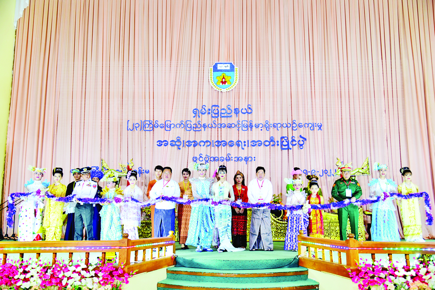 ပြည်နယ်အဆင့် မြန်မာ့ရိုးရာယဉ်ကျေးမှု အဆို၊ အက၊ အရေး၊ အတီး ပြိုင်ပွဲဖွင့်ပွဲကို ယနေ့ နံနက် ၉ နာရီတွင် တောင်ကြီးမြို့ တောင်ကြီးတက္ကသိုလ် ဘွဲ့နှင်းသဘင်ခန်းမ၌ ကျင်းပရာ ပြိုင်ပွဲကျင်းပရေးဦးစီးကော်မတီနာယက ရှမ်းပြည်နယ်ဝန်ကြီးချုပ် ဒေါက်တာကျော်ထွန်း၊ အရှေ့ပိုင်းတိုင်းစစ်ဌာနချုပ် ဒုတိယတိုင်းမှူး ဗိုလ်မှူးချုပ်ဝင်းဇော်မိုး၊ ပြည်နယ် တရားလွှတ်တော်တရားသူကြီးချုပ်နှင့် ပြိုင်ပွဲကျင်းပရေးဦးစီး ကော်မတီဥက္ကဋ္ဌ ပြည်နယ်လူမှုရေးဝန်ကြီးတို့က ဖဲကြိုးဖြတ် ဖွင့်လှစ်ပေးကြသည်။
