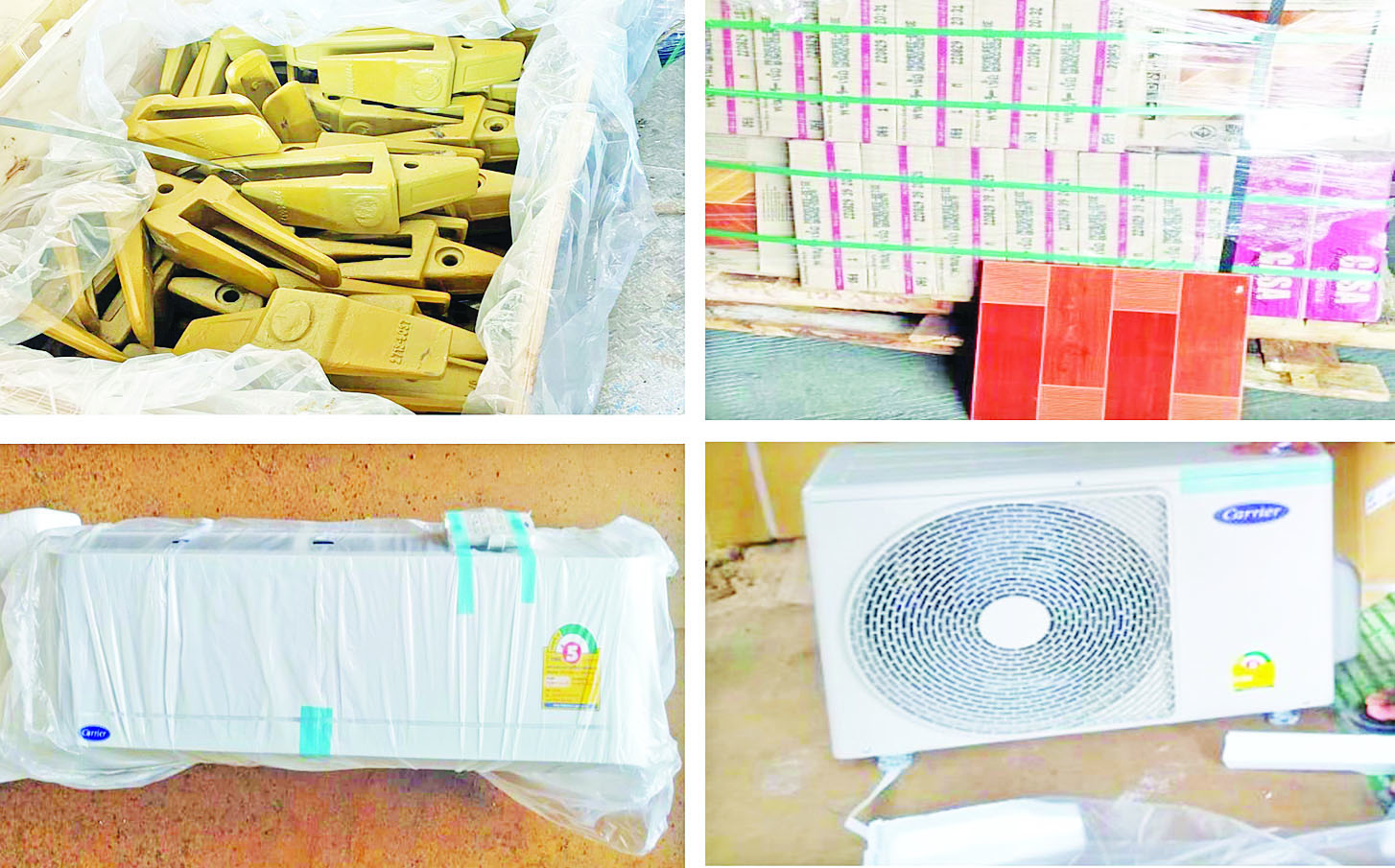 တရားမဝင် သစ်မျိုးစုံ၊ လူသုံးကုန်ပစ္စည်း၊ အိမ်သုံးလျှပ်စစ်ပစ္စည်း၊ လုပ်ငန်းသုံးပစ္စည်း၊ ယန္တရားအပိုပစ္စည်းနှင့် မော်တော်ယာဉ်များ ဖမ်းဆီးရမိ