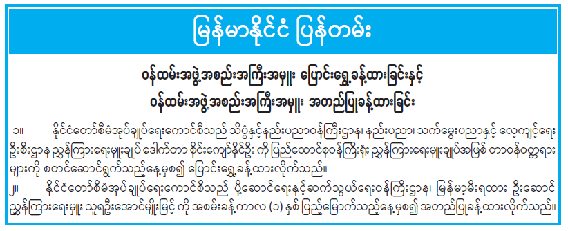 ဝန်ထမ်းအဖွဲ့အစည်းအကြီးအမှူး ပြောင်းရွှေ့ခန့်ထားခြင်းနှင့် ဝန်ထမ်းအဖွဲ့အစည်း အကြီးအမှူး အတည်ပြုခန့်ထားခြင်း