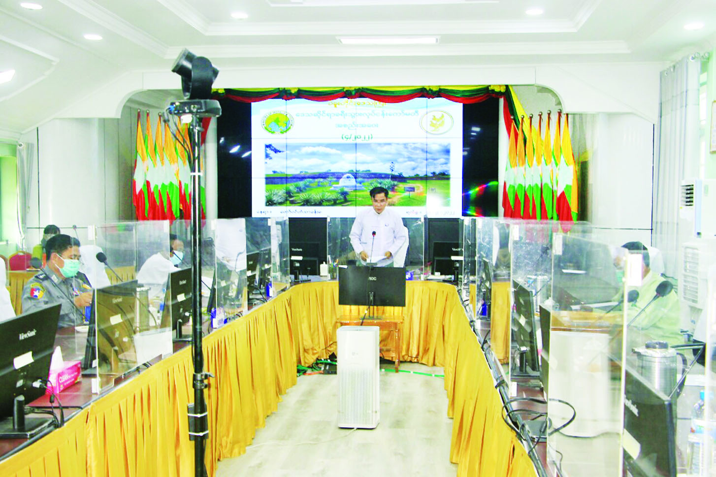 ပဲခူးတိုင်းဒေသကြီးအစိုးရအဖွဲ့ရုံး၊ တော်ဝင်ဟံသာ အစည်းအဝေးခန်းမ၌ ယနေ့ နံနက်ပိုင်းက ကျင်းပသည့် ဒေသဆိုင်ရာခရီးသွားလုပ်ငန်းကော်မတီ လုပ်ငန်းညှိနှိုင်းအစည်းအဝေးတွင် ဟိုတယ်လုပ်ငန်းလိုင်စင်အသစ် လျှောက်ထားလာမှု တစ်ခု၊ ခရီးသွားဧည့်လမ်းညွှန် သက်တမ်းတိုးခြင်း လေးခု၊ ဟိုတယ်လုပ်ငန်းလိုင်စင် သက်တမ်းတိုးခြင်း ၁၀ ခုနှင့် စပ်လျဉ်း၍ တိုင်းဒေသကြီးဝန်ကြီးချုပ်က ဥပဒေ၊ နည်းဥပဒေနှင့်အညီ ညှိနှိုင်းဆောင်ရွက်ပေးသည်။
