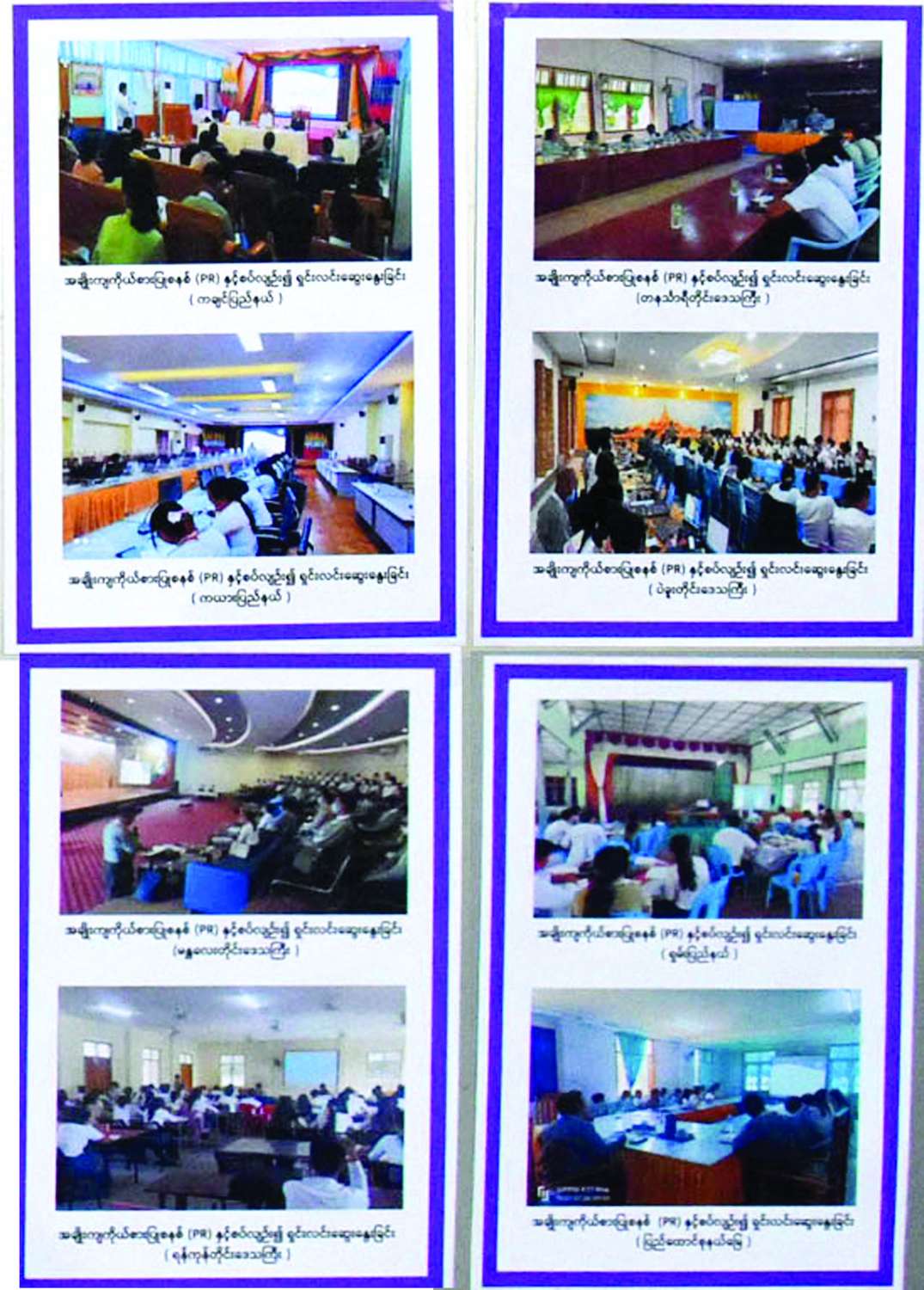 ယင်းနေရာတွင် အလေးထားတင်ပြလိုခြင်းသည် ပြည်သူလူထုနှင့် မဲဆန္ဒရှင် အသိပညာပေး လုပ်ငန်းများ ဆောင်ရွက်မှုအခြေအနေများ ဖြစ်ပါကြောင်း၊ ပြည်ထောင်စု ရွေးကောက်ပွဲကော်မရှင်အနေဖြင့် နောင်ကျင်းပမည့် ရွေးကောက်ပွဲတွင် အသုံးပြုမည့် အချိုးကျ ကိုယ်စားပြုစနစ်(PR)နှင့် ဥပဒေမူဘောင်အပါအဝင် သိသင့်သိထိုက်သည့် အကြောင်းအရာများကို မဲဆန္ဒရှင်ပြည်သူများ သိရှိနိုင်ရေး ဆောင်ရွက်လျက်ရှိကြောင်း၊ ထိုသို့ ဆောင်ရွက်ရာတွင် နိုင်ငံပိုင်သတင်းစာများမှ နိုင်ငံတကာ ရွေးကောက်ပွဲစနစ်များ အပါအဝင် ရွေးကောက်ပွဲဆိုင်ရာ ဆောင်းပါး ၄၆ ပုဒ်ကို ရေးသားဖော်ပြခဲ့ပါကြောင်း၊ ရွေးကောက်ပွဲဆိုင်ရာ အသိပညာပေးစာအုပ် လေးအုပ် ပုံနှိပ်ထုတ်ဝေခဲ့ပြီး၊ PR စနစ်နှင့် ပတ်သက်ပြီး မဲဆန္ဒရှင်အသိပညာပေး ရုပ်/သံအစီအစဉ် နှစ်ခုကို ရိုက်ကူးခဲ့ပြီး နိုင်ငံပိုင် ရုပ်မြင်သံကြားအစီအစဉ်များတွင် ထုတ်လွှင့်ခဲ့ပြီး ဖြစ်ပါကြောင်း၊ ရွေးကောက်ပွဲဆိုင်ရာ သီချင်း သုံးပုဒ်ကိုလည်း ရိုက်ကူးထားပြီဖြစ်ကြောင်း၊ ထို့အတူ မဲဆန္ဒရှင်များ မဲရုံတွင် စနစ်တကျ မဲပေးနိုင်ရေး မဲရုံသရုပ်ပြ အစီအစဉ်ကိုလည်း ပြည်ထောင်စု ရွေးကောက်ပွဲကော်မရှင်နှင့် ပြန်ကြားရေးဝန်ကြီးဌာနတို့ ပူးပေါင်းစီစဉ် ရိုက်ကူးလျက်ရှိကြောင်း၊ ထို့အပြင် ပြည်ထောင်စုရွေးကောက်ပွဲကော်မရှင် အဖွဲ့ဝင်များအနေဖြင့် မိမိကွပ်ကဲမှုနယ်မြေဖြစ်သည့် တိုင်းဒေသကြီးနှင့် ပြည်နယ်၊ ရွေးကောက်ပွဲကော်မရှင် အဖွဲ့ခွဲရုံးနှင့် ကော်မရှင် အဖွဲ့ခွဲရုံးအဆင့်ဆင့်က ဝန်ထမ်းများကို အချိုးကျ ကိုယ်စားပြုစနစ်နှင့် ရွေးကောက်ပွဲဥပဒေ၊ နည်းဥပဒေတွေနှင့် စပ်လျဉ်းပြီး ကိုယ်တိုင် သွားရောက်၍လည်းကောင်း Online မှတစ်ဆင့် လည်းကောင်း ဆွေးနွေးပို့ချခြင်းများ ဆောင်ရွက်လျက်ရှိကြောင်း ပြောကြားသည်။