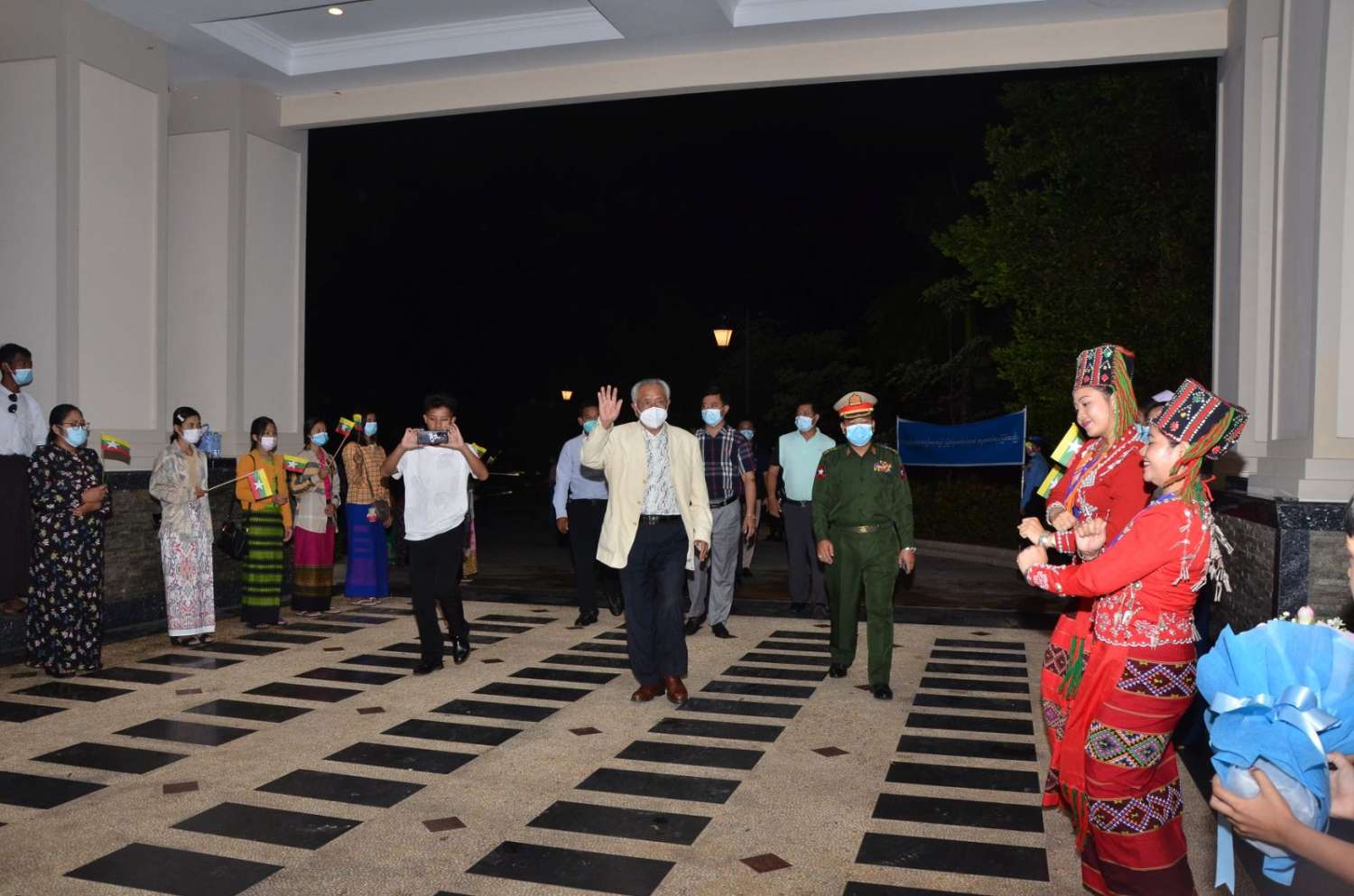 အဆိုပါ အမျိုးသားဒီမိုကရက်တစ်မဟာမိတ်အဖွဲ့ (NDAA) ငြိမ်းချမ်းရေးကိုယ်စားလှယ်အဖွဲ့သည် မွန်းလွဲပိုင်းတွင် နေပြည်တော်လေဆိပ်သို့လည်းကောင်း၊ ရှမ်းပြည်တိုးတက်ရေးပါတီ (SSPP) ငြိမ်းချမ်းရေးကိုယ်စားလှယ်အဖွဲ့သည် မွန်းလွဲပိုင်းနှင့် “ဝ” ပြည် သွေးစည်းညီညွတ်ရေးပါတီ (UWSP) ငြိမ်းချမ်းရေးကိုယ်စားလှယ်အဖွဲ့သည် ညနေပိုင်းတွင်လည်းကောင်း နေပြည်တော်ရှိ Horizon Lake View Resort သို့ ရောက်ရှိကြရာ အမျိုးသားစည်းလုံးညီညွတ်ရေးနှင့် ငြိမ်းချမ်းရေးဖော်ဆောင်မှု ညှိနှိုင်းရေးကော်မတီအဖွဲ့ဝင်နှင့် တာဝန်ရှိသူများ၊ နေပြည်တော်ကောင်စီနှင့် ဝန်ကြီးဌာနများမှ တာဝန်ရှိသူများ၊ သာသနာရေးနှင့်ယဉ်ကျေးမှုဝန်ကြီးဌာန၊ အနုပညာဦးစီးဌာနမှ တိုင်းရင်းသား တိုင်းရင်းသူများ၊ ဌာနဆိုင်ရာဝန်ထမ်းများ၊ ငြိမ်းချမ်းရေးကိုလိုလားသည့် ဒေသခံပြည်သူများက ထာဝရငြိမ်းချမ်းရေးကို ရရှိရေးသည် ပြည်သူတစ်ရပ်လုံး၏ ဆန္ဒအစစ်အမှန်ဖြစ်သည်၊ ငြိမ်းချမ်းရေးရရှိရေးသည် နိုင်ငံသား အားလုံး၏ ဆန္ဒအမှန်ဖြစ်သည်၊ ပြည်ထောင်စုကြီးငြိမ်းချမ်းဖို့ တွေ့ဆုံဆွေးနွေးကြပါစို့၊ တိုင်းရင်းသားတွေစည်းလုံးမှ ငြိမ်းချမ်းတည်ငြိမ်အေးချမ်းရ စသည့် တိုင်းရင်းသားဘာသာနှင့် မြန်မာဘာသာစာသားပါ ဆိုင်းဘုတ်များကိုင်ဆောင်၍လည်းကောင်း၊ နိုင်ငံတော်အလံငယ်များ ကိုင်ဆောင်၍လည်းကောင်း ကြိုဆိုခဲ့ကြကြောင်း သတင်းရရှိသည်။
