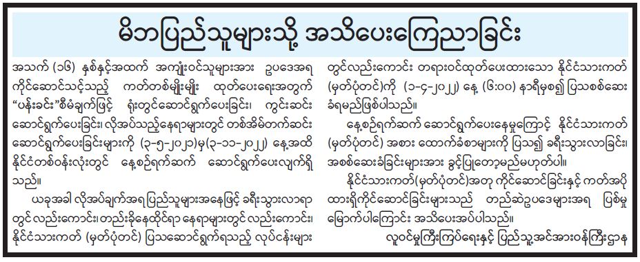 မိဘပြည်သူများသို့ အသိပေးကြေညာခြင်း