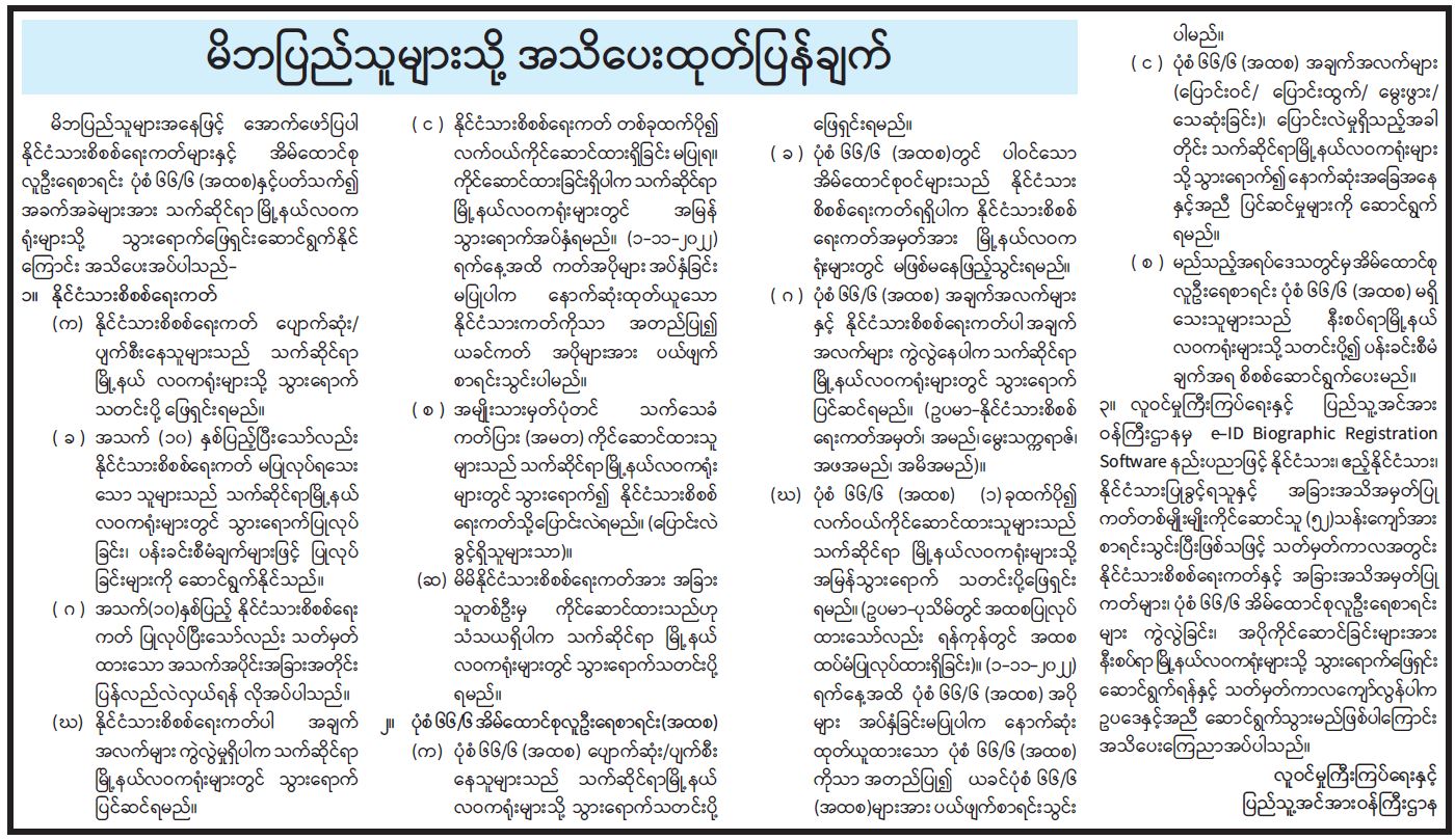 မိဘပြည်သူများသို့ အသိပေးထုတ်ပြန်ချက်