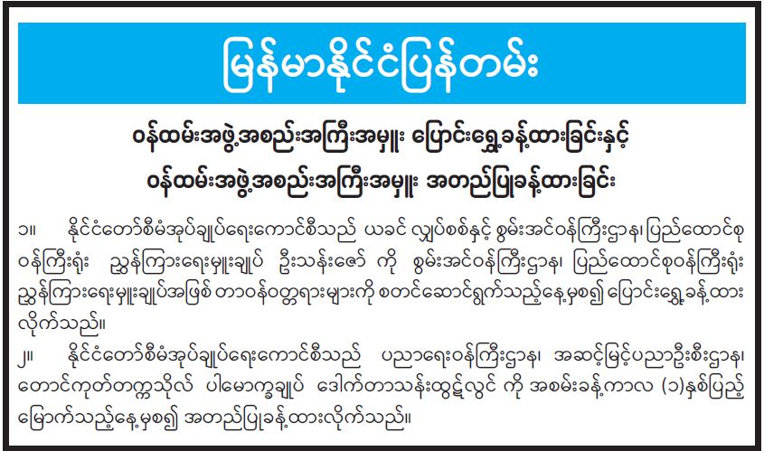 ဝန်ထမ်းအဖွဲ့အစည်းအကြီးအမှူး ပြောင်းရွှေ့ခန့်ထားခြင်းနှင့် ဝန်ထမ်းအဖွဲ့အစည်းအကြီးအမှူး အတည်ပြုခန့်ထားခြင်း