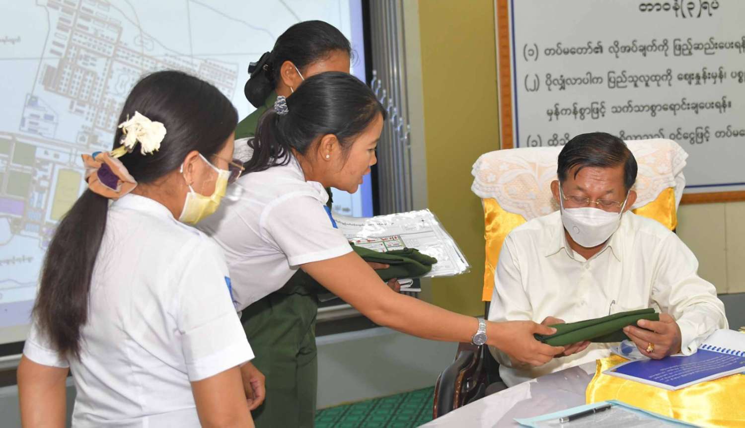 ယင်းနောက် နိုင်ငံတော်စီမံအုပ်ချုပ်ရေးကောင်စီဥက္ကဋ္ဌ တပ်မတော်ကာကွယ်ရေး ဦးစီးချုပ်သည် ခင်းကျင်းပြထားသော စက်ရုံမှထုတ်လုပ်ထားသည့် ယူနီဖောင်းပိတ်စများနှင့် ချည်ထည်များ၏ အရည်အသွေးများအား ကြည့်ရှုစစ်ဆေးကာ စက်ရုံ ဝန်ထမ်းများအတွက် ချီးမြှင့်ငွေများ ပေးအပ်ခဲ့ကြောင်း သတင်းရရှိသည်။