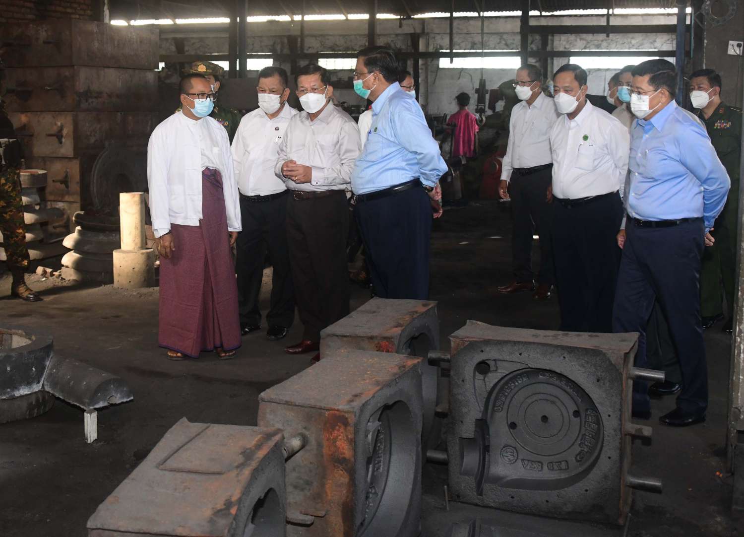 နိုင်ငံတော် စီမံအုပ်ချုပ်ရေးကောင်စီ ဥက္ကဋ္ဌ နိုင်ငံတော်ဝန်ကြီးချုပ် ဗိုလ်ချုပ်မှူးကြီး မင်းအောင်လှိုင်သည် ကောင်စီတွဲဖက် အတွင်းရေးမှူး ဒုတိယဗိုလ်ချုပ်ကြီး ရဲဝင်းဦး၊ ပြည်ထောင်စုဝန်ကြီးများ ဖြစ်ကြသည့် ဦးတင်ထွဋ်ဦး၊ ဦးလှမိုး၊ ဒေါက်တာ ချာလီသန်း၊ မန္တလေးတိုင်း ဒေသကြီး ဝန်ကြီးချုပ် ဦးမောင်ကို၊ ညှိနှိုင်းကွပ်ကဲရေးမှူး (ကြည်း၊ ရေ၊ လေ) ဗိုလ်ချုပ်ကြီး မောင်မောင်အေး၊ ကာကွယ်ရေးဦးစီးချုပ်ရုံးမှ တပ်မတော်အရာရှိကြီး များ၊ အလယ်ပိုင်းတိုင်း စစ်ဌာနချုပ်တိုင်းမှူး ဗိုလ်ချုပ် ကိုကိုဦးနှင့် အဖွဲ့ဝင်များ လိုက်ပါ၍ ယနေ့ နံနက်ပိုင်းတွင် မန္တလေးမြို့၊ စက်မှုဇုန်(၁)အတွင်း ကုန်ထုတ်လုပ်ငန်းများ ဆောင်ရွက်နေမှု အခြေအနေများကို သွားရောက်ကြည့်ရှု စစ်ဆေးသည်။