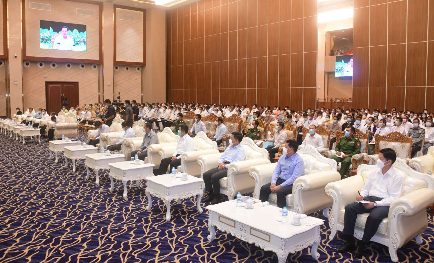 နိုင်ငံတော်မှ စိုက်ပျိုးရေး ချေးငွေများကို ယခင်ကတည်း ထုတ်ချေးပေးခဲ့ကြောင်း၊ နိုင်ငံတော်သို့ ပြန်လည် ပေးဆပ်နိုင်ခြင်း မရှိသေးသည်များလည်း ရှိကြောင်း၊ နိုင်ငံတော်မှ ထုတ်ချေး ပေးထားသည့် ကိုဗစ်-၁၉ ချေးငွေများနှင့် ပတ်သက်၍ ပြန်လည်ပေးဆပ်ရန် ကာလကို သက်တမ်း တိုးပေးသွားမည် ဖြစ်ကြောင်း၊ MSME လုပ်ငန်းတွင် ကုန်ထုတ် လုပ်မှု၊ ကုန်သွယ်မှု၊ ဝန်ဆောင်မှုနှင့် အခြားလုပ်ငန်း ဟူ၍ ရှိကြောင်း၊ မိမိတို့နိုင်ငံတွင် ကုန်ထုတ်လုပ်မှုထက် ဝန်ဆောင်မှု လုပ်ငန်းနှင့် ကုန်သွယ်မှု လုပ်ငန်းများ ပိုမိုများပြားခြင်းကြောင့် ဝယ်လိုအားနှင့် ရောင်းလိုအား မမျှတဘဲ ကုန်ပစ္စည်း ဈေးနှုန်းကြီးမြင့်မှုများ ဖြစ်ပေါ်လျက်ရှိကြောင်း၊ ထုတ်လုပ်မှု ကုန်ကျစရိတ် များကိုလည်း လျော့နည်းအောင် ဆောင်ရွက်ရန် လိုကြောင်း၊ မိမိတို့ အနေဖြင့် ပြည်တွင်း စီးပွားရေးကို အားပေးရန်၊ ပြည်တွင်းကုန် ထုတ်လုပ်မှုများကို အားပေးရန်နှင့် ပြည်တွင်း ရင်းနှီးမြှုပ်နှံမှုကို အားပေးရန် လိုပြီး တိုင်းပြည်၏ အားသည် ပြည်တွင်းမှာသာ ရှိကြောင်း၊ ဒေသအတွင်း ကုန်ထုတ်လုပ်မှုများကို ဆောင်ရွက်နိုင်ခြင်းကြောင့် အလုပ်အကိုင် အခွင့်အလမ်းများ များပြားလာမည် ဖြစ်ပြီး ပြည်ပနိုင်ငံများသို့ သွားရောက် လုပ်ကိုင်ရမှုများ နည်းပါးလာမည် ဖြစ်ကြောင်း၊ ထို့ကြောင့် ကုန်ထုတ်လုပ်မှု လုပ်ငန်းများကို မန္တလေးတိုင်းဒေသကြီးအတွင်း အောင်မြင်အောင် ဆောင်ရွက်ကြစေ လိုကြောင်းဖြင့် တိုက်တွန်းပြောကြားသည်။