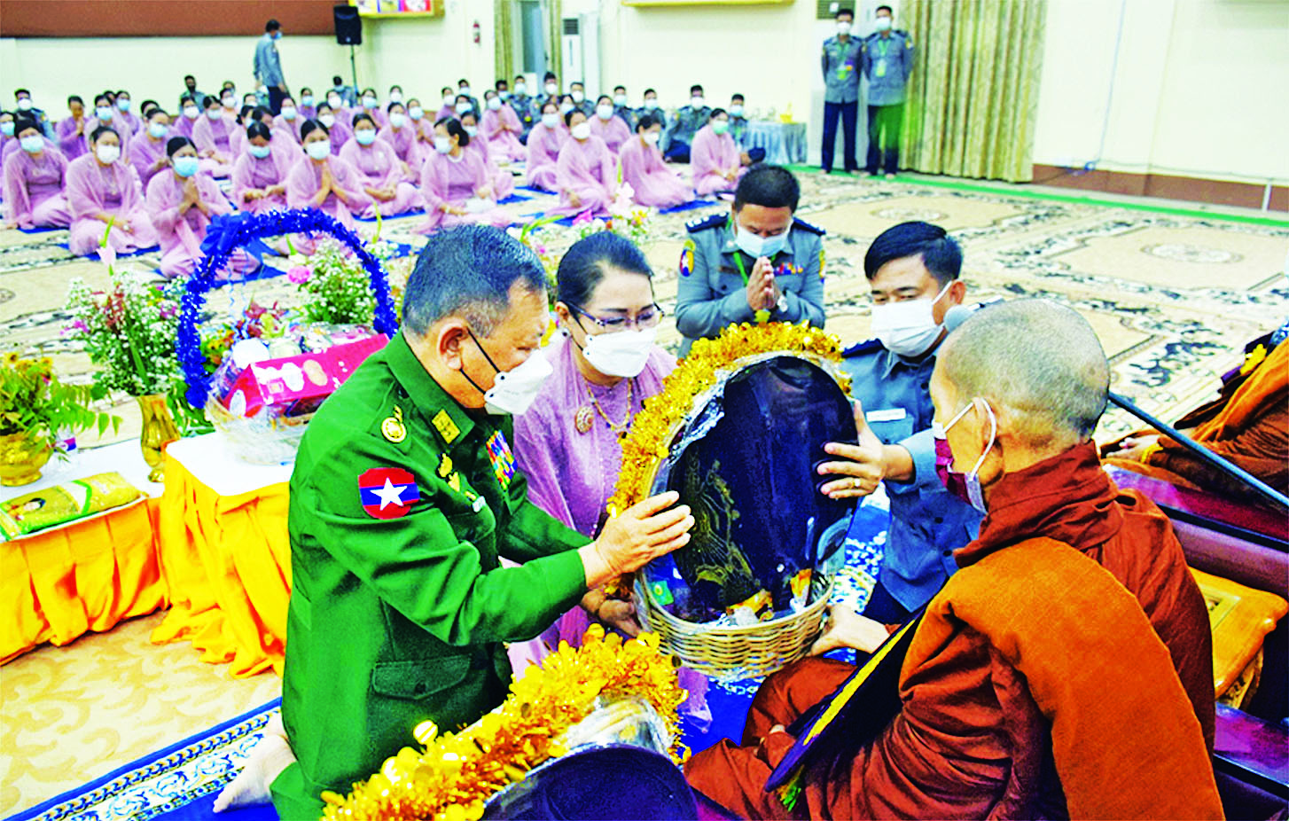 (၅၈)နှစ်မြောက် မြန်မာနိုင်ငံရဲတပ်ဖွဲ့နေ့ ဆရာတော်၊ သံဃာတော်များအား အရုဏ်ဆွမ်း ဆပ်ကပ်လှူဒါန်း ခြင်းအခမ်းအနားကို ယနေ့နံနက်ပိုင်း၌ မြန်မာနိုင်ငံ ရဲတပ်ဖွဲ့ဌာနချုပ် အရိန္ဒမာခန်းမ၌ ကျင်းပသည်။