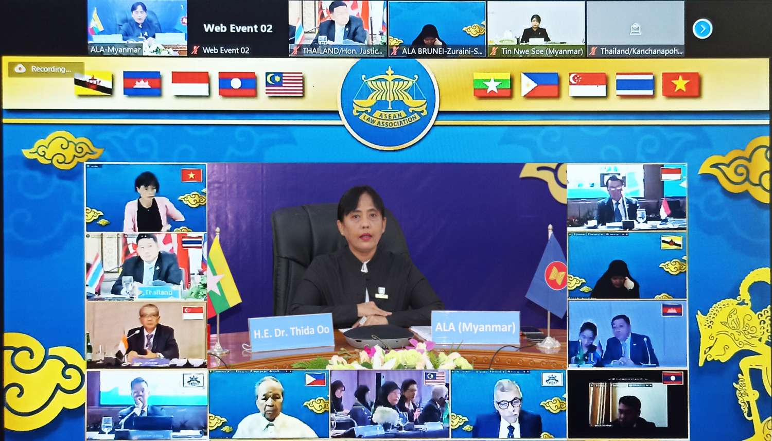 အာဆီယံဥပဒေပညာရှင်များအသင်း-အင်ဒိုနီးရှား (ALA-Indoneisa) က Hybrid စနစ်ဖြင့် အင်ဒိုနီးရှားနိုင်ငံ၊ ဘန်ဒေါင်းမြို့တွင် လက်ခံကျင်းပသည့် (၄၃) ကြိမ်မြောက် အာဆီယံဥပဒေပညာရှင်များအသင်း အုပ်ချုပ်မှုကောင်စီ အစည်းအဝေးသို့ အာဆီယံဥပဒေပညာရှင်များအသင်းဥက္ကဋ္ဌ၊ စင်ကာပူနိုင်ငံ တရားသူကြီးချုပ် H.E. Sundaresh Menon နှင့် အာဆီယံဥပဒေပညာရှင်များအသင်း-အင်ဒိုနီးရှား၏ဥက္ကဋ္ဌ တရားသူကြီးချုပ် H.E. Muhammad Syarifuddin တို့၏ဖိတ်ကြားချက်အရ အာဆီယံဥပဒေပညာရှင်များအသင်း(မြန်မာ)ဥက္ကဋ္ဌ၊ ဥပဒေရေးရာဝန်ကြီးဌာန ပြည်ထောင်စုဝန်ကြီးနှင့် ပြည်ထောင်စုရှေ့နေချုပ် ဒေါက်တာသီတာဦး ဦးဆောင်သည့် မြန်မာကိုယ်စားလှယ်အဖွဲ့သည် Virtual စနစ်ဖြင့် တက်ရောက်ခဲ့ကြသည်။