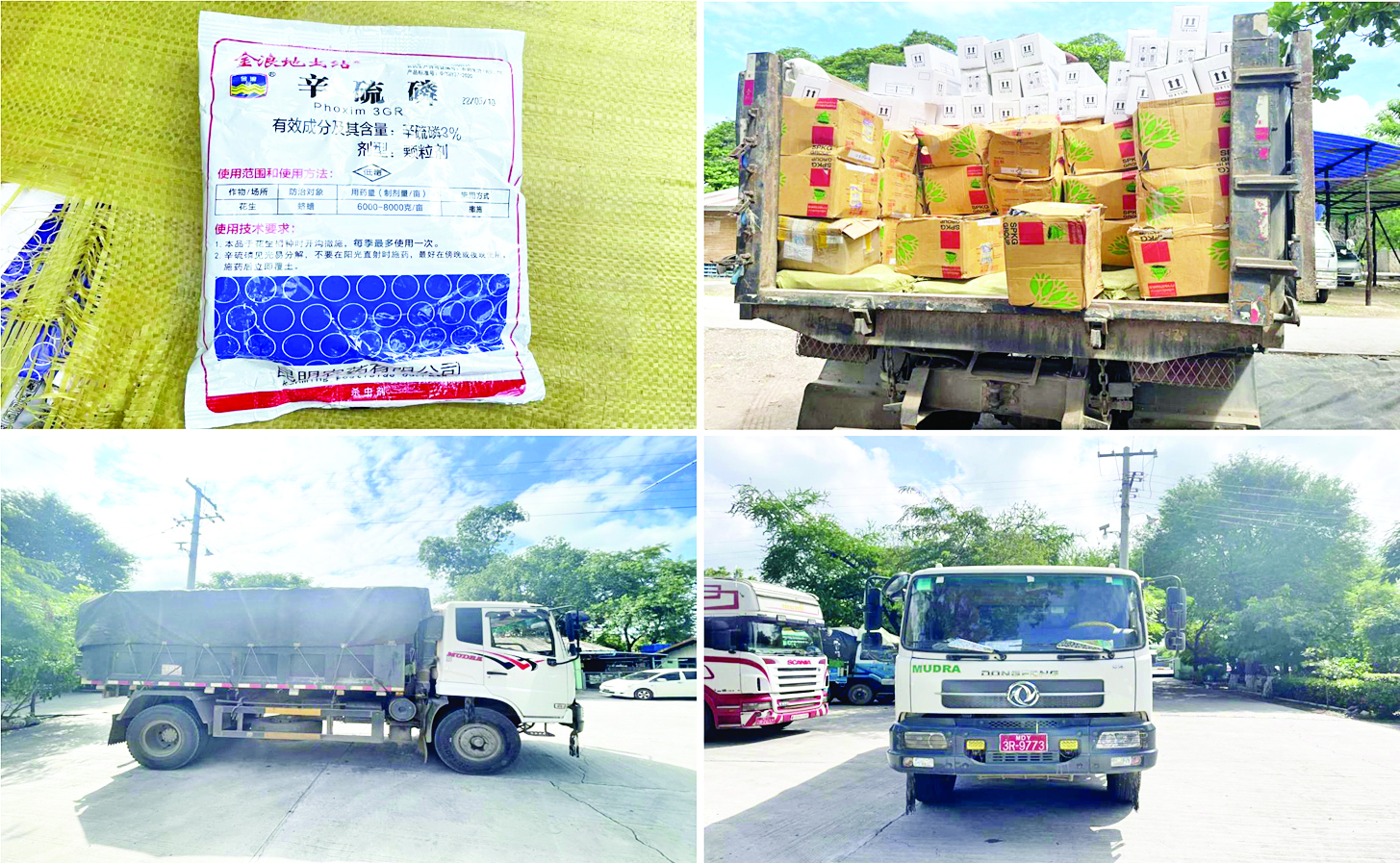 အလားတူ မန္တလေးတိုင်းဒေသကြီး တရားမဝင်ကုန်သွယ်မှုတိုက်ဖျက်ရေးအထူးအဖွဲ့၏ စီမံခန့်ခွဲမှုဖြင့် (၁၆)မိုင် ကျောက်ချော စစ်ဆေးရေးစခန်း၌ မန္တလေးမှ အုမ္မသီး-အုမ္မခါးသို့ သွားရောက်မည့် ယာဉ်တစ်စီးပေါ်မှ တရားဝင်စာရွက်စာတမ်းတင်ပြနိုင်ခြင်းမရှိသည့် ပိုးသတ်ဆေးဟုယူဆရသောပစ္စည်းများ (ခန့်မှန်းတန်ဖိုးငွေ ကျပ် ၁၅၆၆၅၀၀၀)နှင့် အဆိုပါပစ္စည်းများ တင်ဆောင်လာသော Dong Feng Dump Truck အမျိုးအစားယာဉ်တစ်စီး (ခန့်မှန်း တန်ဖိုးငွေကျပ် ၂၀၀၀၀၀၀၀) (စုစုပေါင်းခန့်မှန်းတန်ဖိုးငွေကျပ် ၃၅၆၆၅၀၀၀)ကို သိမ်းဆည်းရမိ ခဲ့ပြီး အကောက်ခွန်လုပ်ထုံးလုပ်နည်းနှင့်အညီ အရေးယူဆောင်ရွက်လျက်ရှိသည်။
