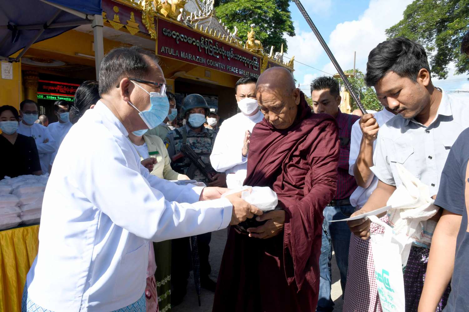 စစ်တွေမြို့၊ မြို့လုံးကျွတ် ဆွမ်းတော်ကြီးလောင်းလှူပွဲကို ယနေ့နံနက်ပိုင်းက စစ်တွေမြို့၊ အတုလမာရဇိန် ပြည်လုံးချမ်းသာ ဘုရားကြီး၌ ကျင်းပရာ နိုင်ငံတော် စီမံအုပ်ချုပ်ရေး ကောင်စီအဖွဲ့ဝင် ဒေါ်အေးနုစိန်၊ ရခိုင်ပြည်နယ် ဝန်ကြီးချုပ် ဒေါက်တာအောင်ကျော်မင်း၊ ပြည်နယ်ဝန်ကြီးများနှင့် ဌာနဆိုင်ရာများ တက်ရောက်ပြီး ဆွမ်းဆန်တော် လောင်းလှူကြသည်။