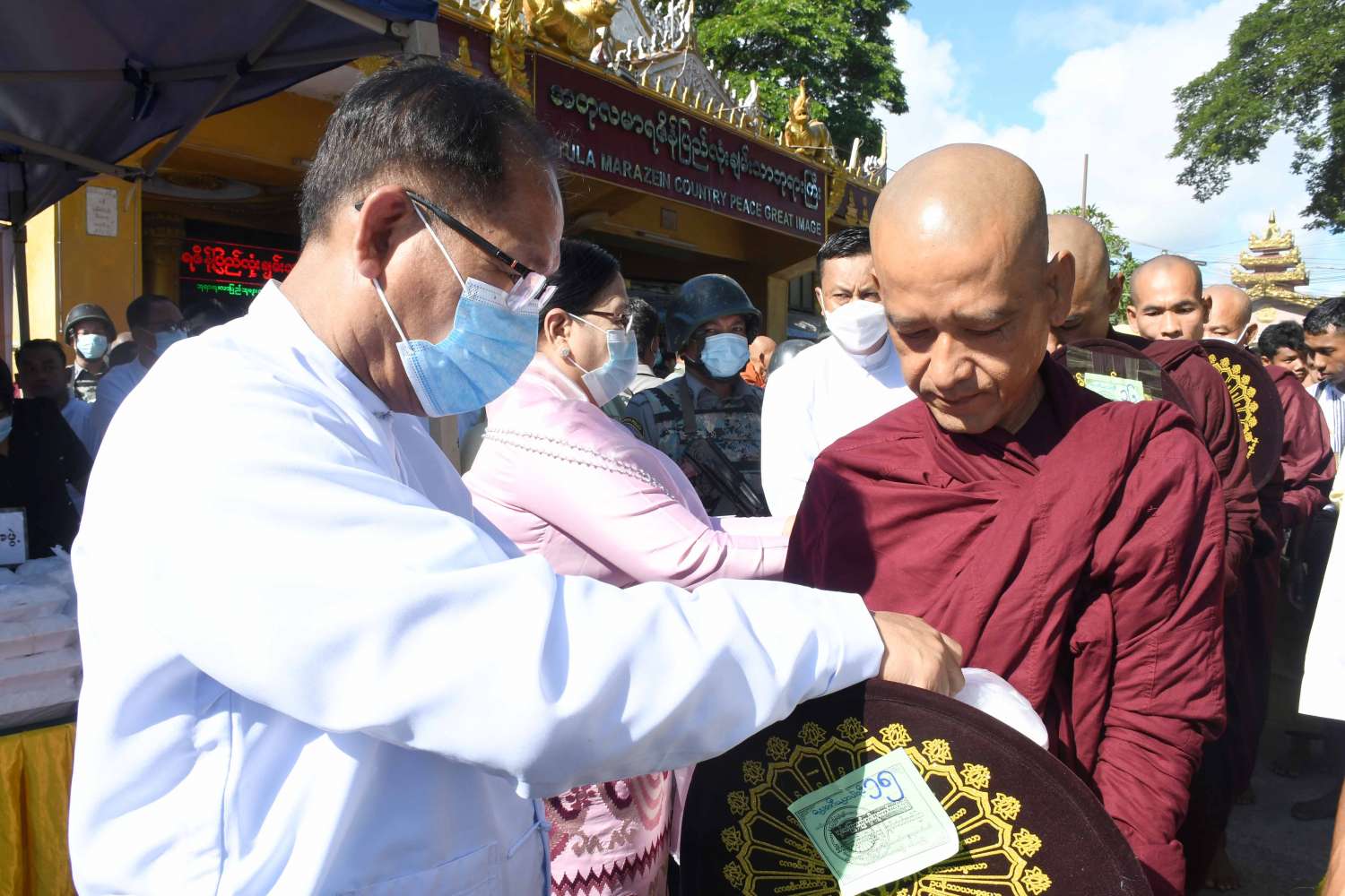 ထို့နောက် နိုင်ငံတော် စီမံအုပ်ချုပ်ရေး ကောင်စီဝင်၊ ပြည်နယ်ဝန်ကြီးချုပ်၊ ပြည်နယ် အစိုးရအဖွဲ့ဝင်များ၊ ဌာနဆိုင်ရာများ၊ လူမှုရေး အဖွဲ့အစည်းများ၊ စေတနာရှင် အလှူရှင်များက ဆရာတော် သံဃာတော်များနှင့် သီလရှင်များအား ဆွမ်းဆန်တော်များ၊ အချိုရည်နှင့် လှူဖွယ်ဝတ္ထု ပစ္စည်းများအား စေတနာထက်သန်စွာဖြင့် ပါဝင် ကုသိုလ်ယူလှူဒါန်းကြသည်။