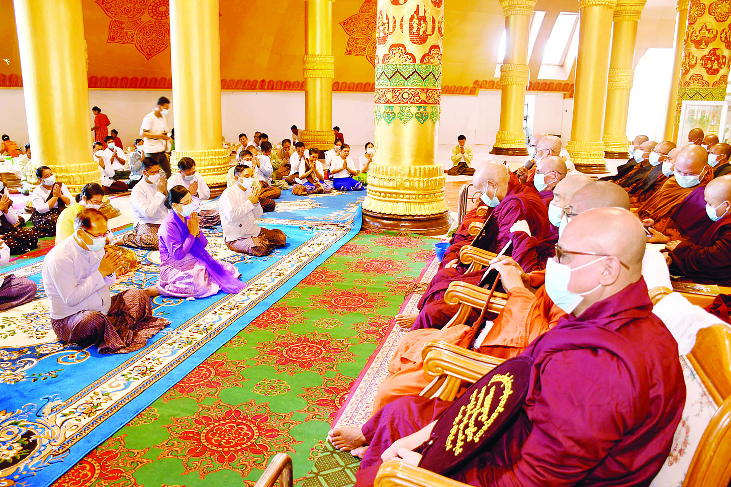 ဆက်လက်၍ ပြည်နယ်ဩဝါဒါစရိယ ဆရာတော်ကြီးများက ဦးဆောင်ကာ ဘာဏက သံဃာတော်များ၊ နိုင်ငံတော်စီမံအုပ်ချုပ်ရေးကောင်စီအဖွဲ့ဝင်နှင့် ဧည့်ပရိသတ်များက မြတ်ပဋ္ဌာန်း ဒေသနာတော်မြတ်အား စတင်ဖွင့်လှစ် ပူဇော်ခဲ့ကြကြောင်း သိရသည်။