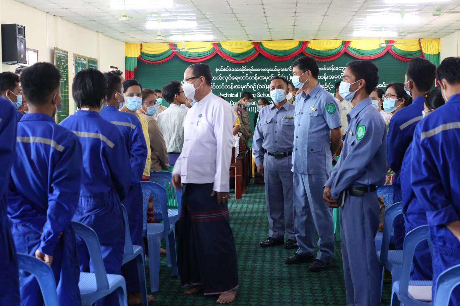 ဆက်လက်၍ သင်တန်းသားများကိုယ်စား သင်တန်းဆင်းသင်တန်းသားတစ်ဦးက ကျေးဇူးတင်စကားပြန်လည်ပြောကြားပြီး ပြည်နယ်ဝန်ကြီးချုပ်နှင့် တာဝန်ရှိသူများသည် စာတွေ့လက်တွေ့သင်ကြားပို့ချပေးခဲ့သော စက်ရုံအလုပ်ရုံများနှင့် သင်တန်းဆင်း သင်တန်းသားများ ကိုယ်တိုင်ဆောင်ရွက်ထားသော သင်တန်းဆင်းလက်ရာများကို လိုက်လံကြည့်ရှုအားပေးခဲ့ကြကြောင်း သိရသည်။
