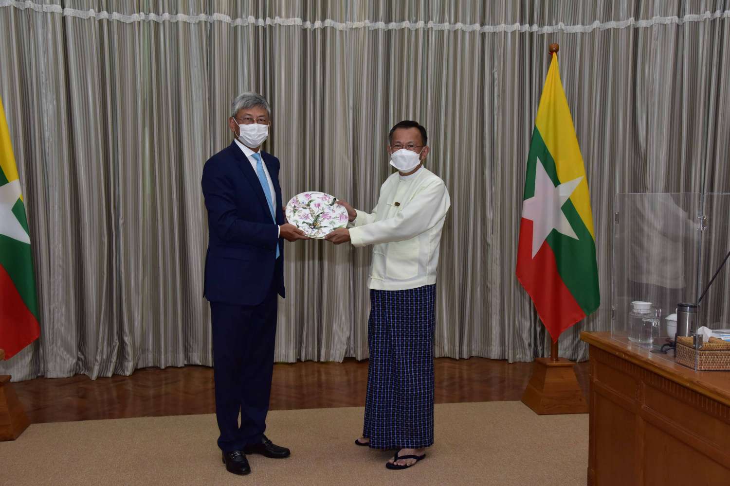 ရင်းနှီးမြှုပ်နှံမှုနှင့် နိုင်ငံခြားစီးပွားဆက်သွယ်ရေးဝန်ကြီးဌာန၊ ပြည်ထောင်စုဝန်ကြီး ဒေါက်တာကံဇော်သည် ယနေ့နံနက်ပိုင်းက မြန်မာနိုင်ငံဆိုင်ရာ တရုတ်ပြည်သူ့သမ္မတနိုင်ငံသံအမတ်ကြီး မစ္စတာချန်းဟိုင် ဦးဆောင်သော ကိုယ်စားလှယ်အဖွဲ့ဝင်များအား နေပြည်တော်ရှိ ရင်းနှီးမြှုပ်နှံမှုနှင့် နိုင်ငံခြားစီးပွားဆက်သွယ်ရေးဝန်ကြီးဌာန၊ အစည်းအဝေးခန်းမ၌ လက်ခံတွေ့ဆုံသည်။