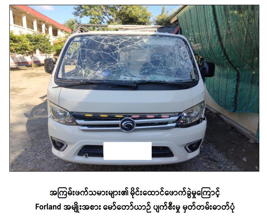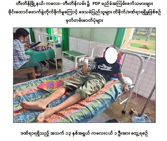 တီးတိန်မြို့မှ ကလေးမြို့သို့ ထွက်ခွာလာသည့် ခရီးသည်တင်မော်တော်ယာဉ်အား PDF အမည်ခံအကြမ်းဖက်သမားများက လက်လုပ်မိုင်းများဖြင့် အကြောင်းမဲ့ဖောက်ခွဲတိုက်ခိုက်မှုကြောင့် ခရီးသွားပြည်သူများ ထိခိုက်ဒဏ်ရာရရှိ
