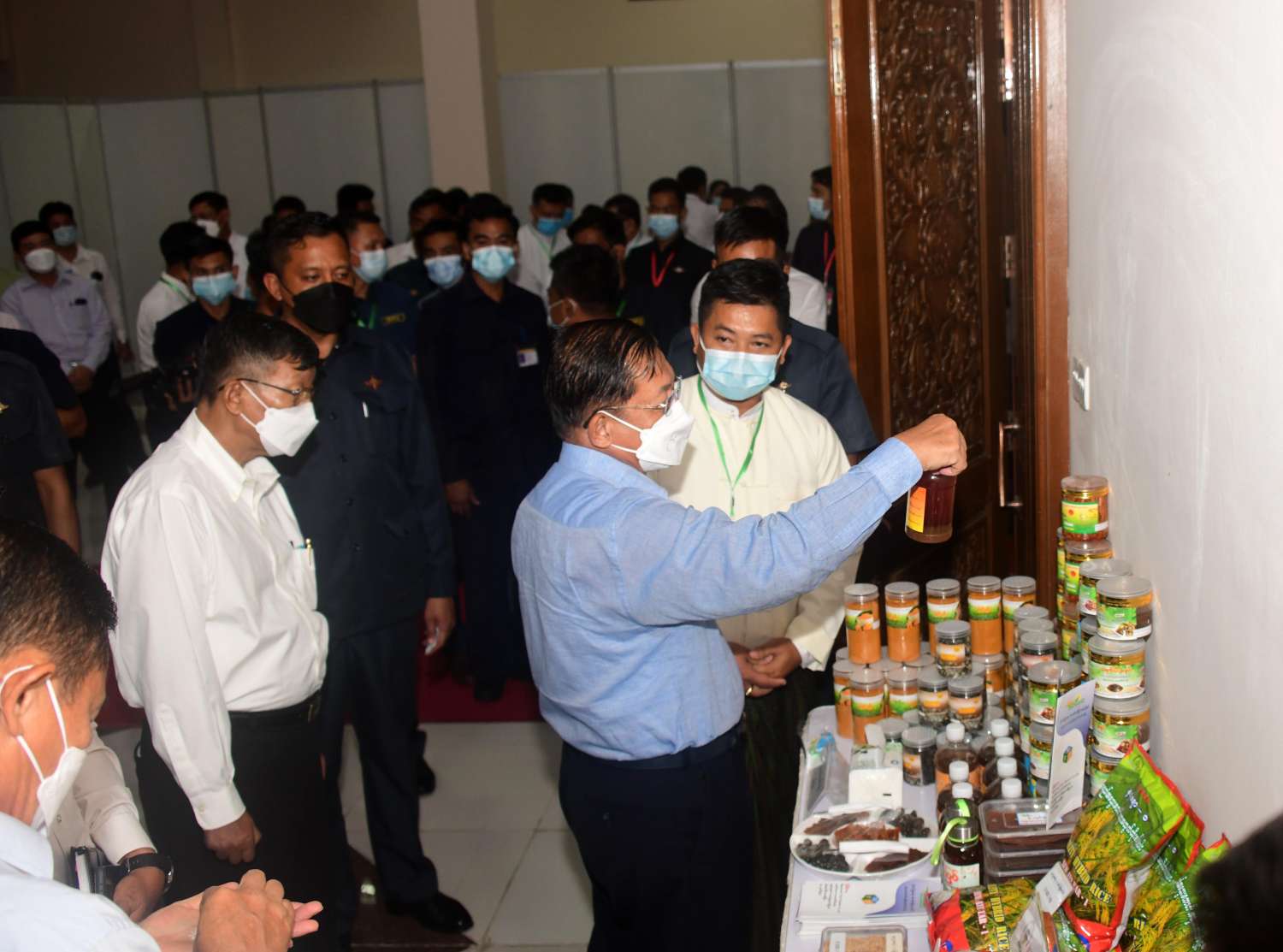 ယင်းနောက် နိုင်ငံတော်စီမံအုပ်ချုပ်ရေးကောင်စီဥက္ကဋ္ဌ နိုင်ငံတော်ဝန်ကြီးချုပ်နှင့် အခမ်းအနား တက်ရောက်လာကြသူများသည် နေပြည်တော်ကောင်စီနယ်မြေအတွင်းရှိ အသေးစား၊ အငယ်စားနှင့် အလတ်စားစီးပွားရေး (MSME) လုပ်ငန်းများမှ ထုတ်လုပ်ထားသည့် တန်ဖိုးမြှင့်ထုတ်ကုန်ပစ္စည်းများကို လှည့်လည်ကြည့်ရှုအားပေး ခဲ့ကြောင်းသတင်းရရှိသည်။