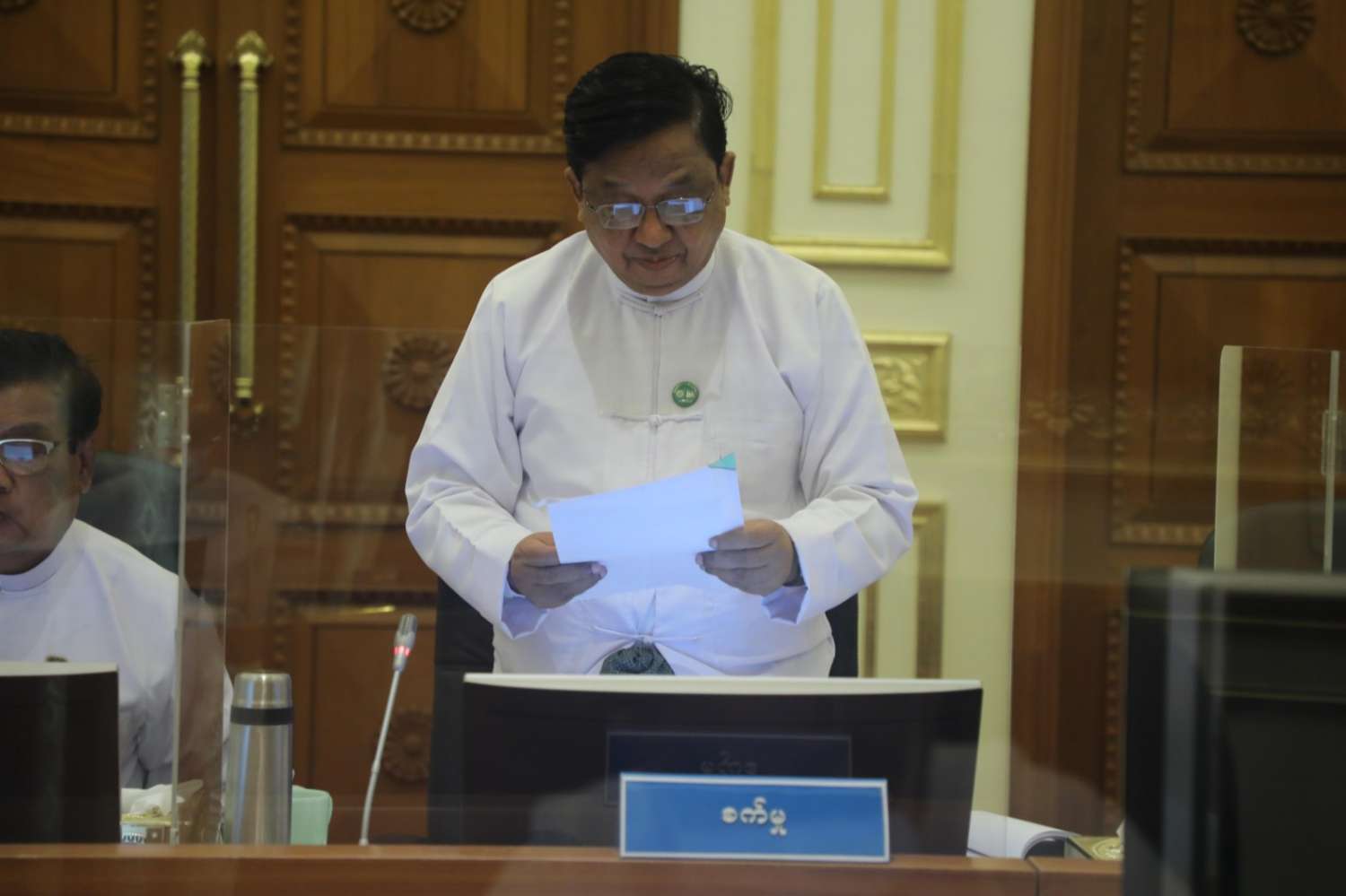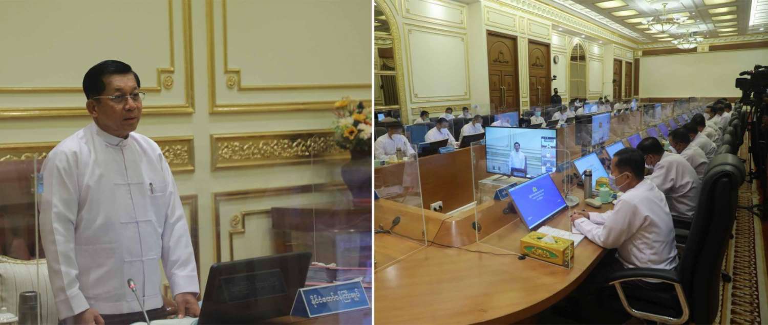 ပြည်ထောင်စုအစိုးရအဖွဲ့အစည်းအဝေး အမှတ်စဉ်(၈/၂၀၂၂)ကို ယနေ့မွန်းလွဲပိုင်းတွင် နေပြည်တော်ရှိ နိုင်ငံတော်စီမံအုပ်ချုပ်ရေးကောင်စီဥက္ကဋ္ဌရုံး အစည်းအဝေးခန်းမ၌ ကျင်းပရာ နိုင်ငံတော်စီမံအုပ်ချုပ်ရေးကောင်စီဥက္ကဋ္ဌ နိုင်ငံတော်ဝန်ကြီးချုပ် ဗိုလ်ချုပ်မှူးကြီးမင်းအောင်လှိုင် တက်ရောက်အမှာစကားပြောကြားသည်။