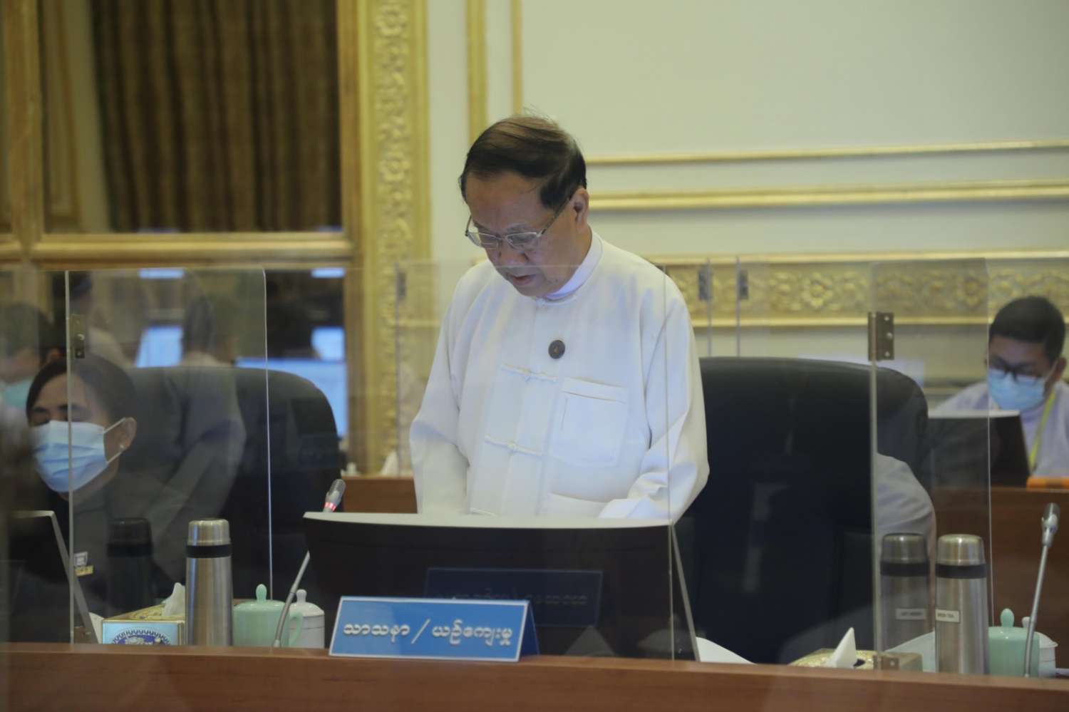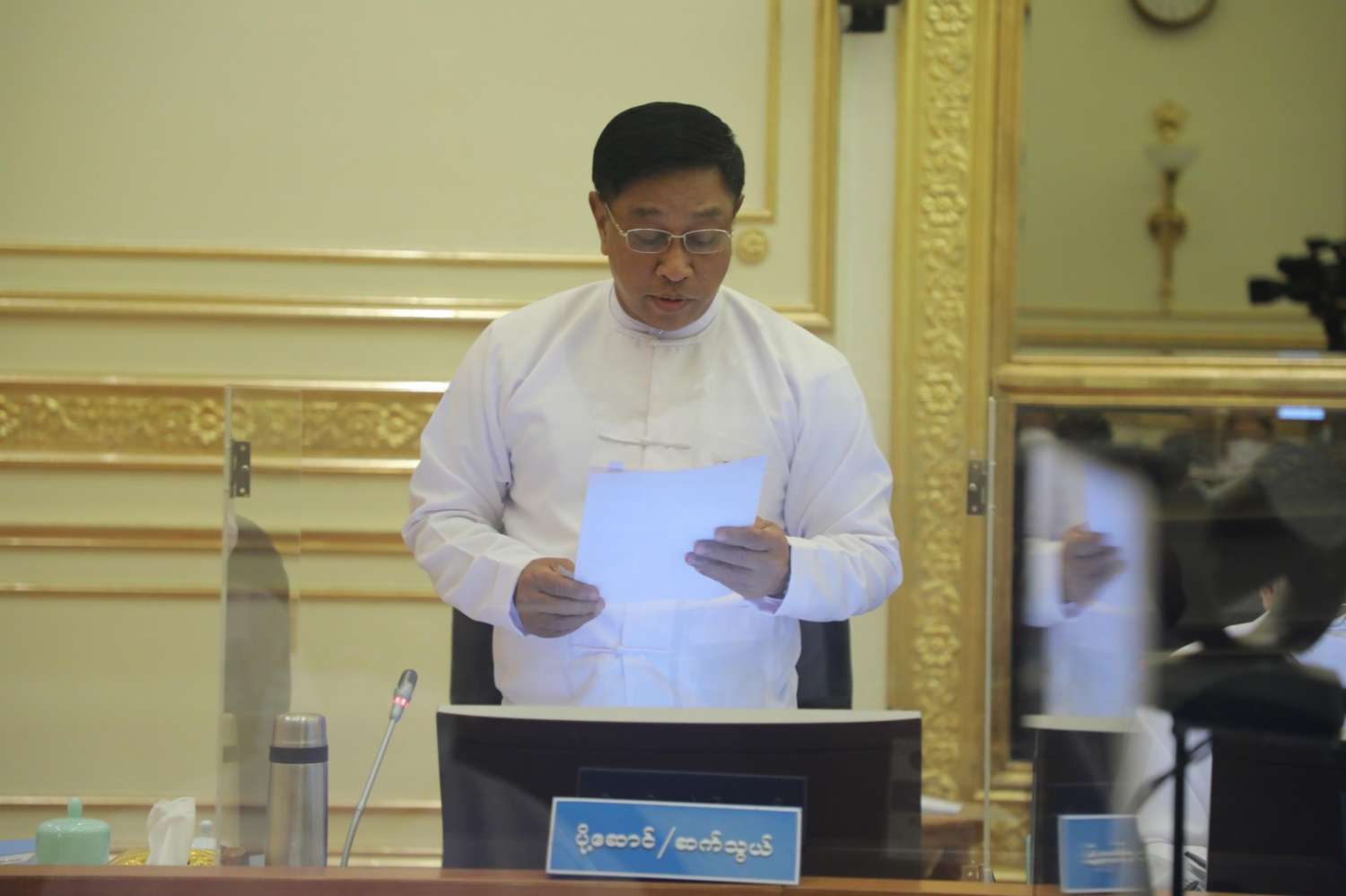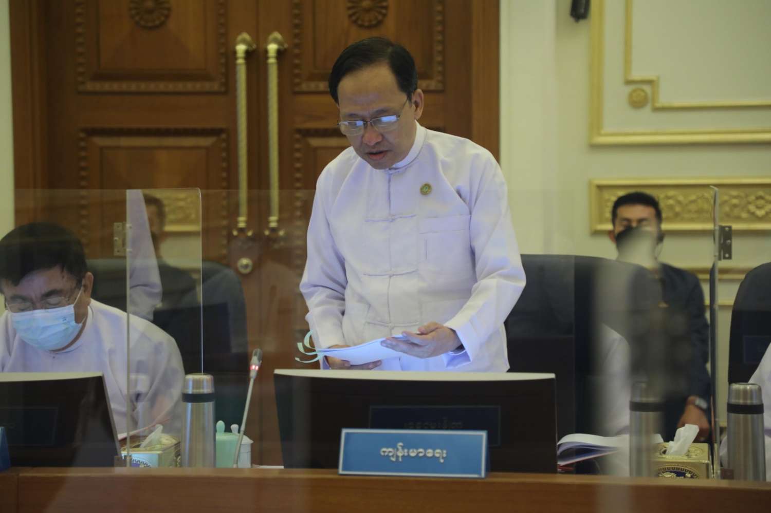 ယင်းနောက် အစည်းအဝေးသို့ တက်ရောက်လာကြသည့် ပြည်ထောင်စုဝန်ကြီးများက သက်ဆိုင်ရာ ကဏ္ဍအလိုက် ရှင်းလင်းတင်ပြကြသည်။